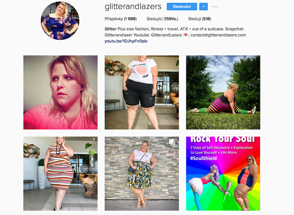 Hvězdou Body Positive Movement je také Anna s účtem @glitterandlazers. Tato žena předvádí s velikostí větší než 50 modely, které jsou naprosto úchvatné. Kromě toho je machr přes jógu a velice ráda sportuje. Tento fakt bere vítr z plachet všem odpůrcům, kteří tvrdí, že lidé bojující za dobrý pocit v nedokonalém těle jsou jen líní, tlustí budižkničemové. Tato komunita lidí se samozřejmě navzájem podporuje a sdílí množství příkladů všech, kdo se nebojí jít s kůží na trh. Za řadou z nich mnohdy stojí silné životní příběhy.