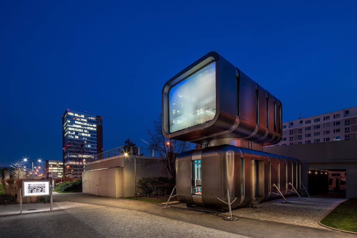 Dvoupatrový Cyberdog svým tvarem připomíná hlavu a tělo psa a materiálem vesmírnou loď z budoucnosti. Spodní část objektu je delší. S horní částí je spojena vnitřním točitým schodištěm.