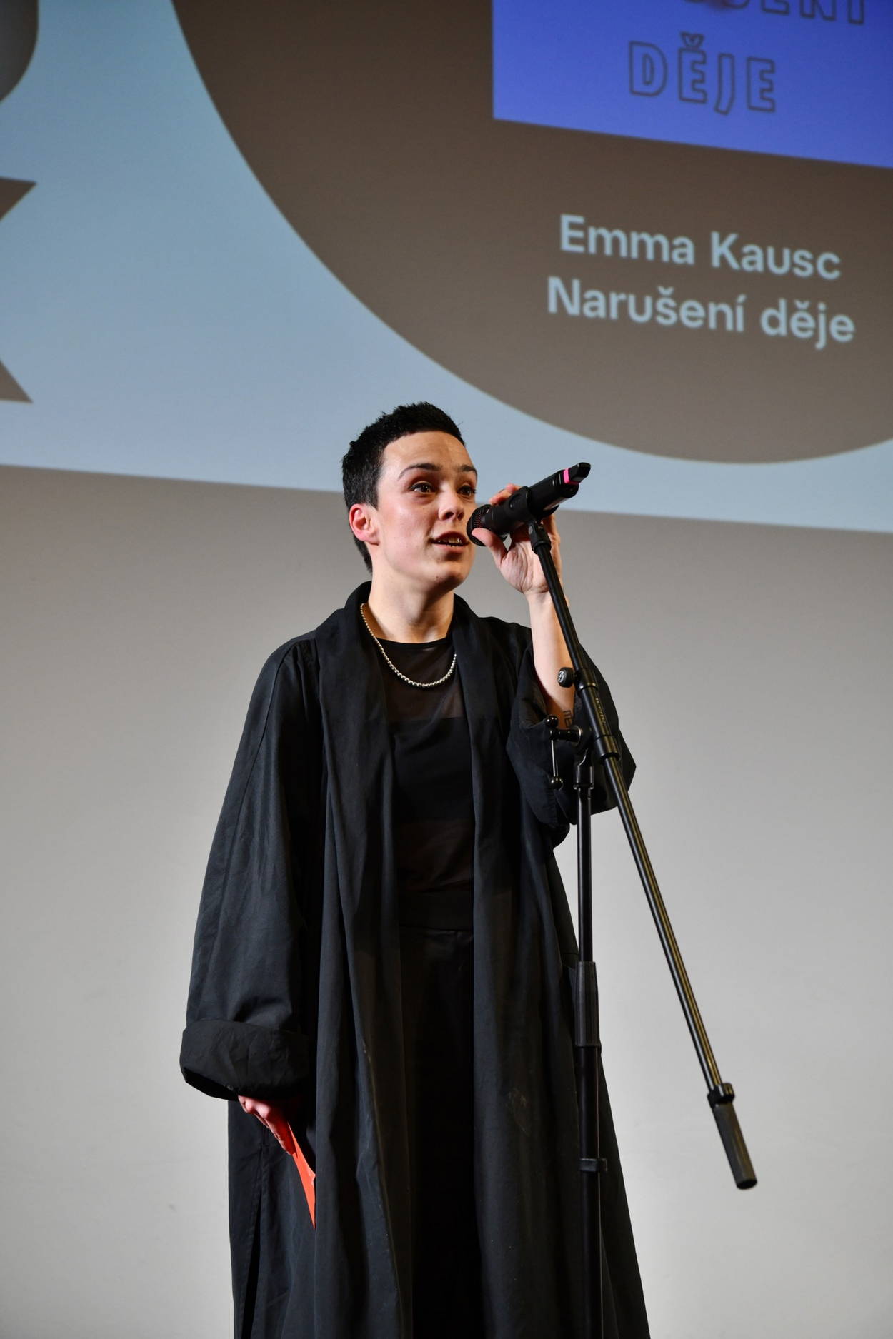Ze tří nominovaných debutových románů byla v konkurenci Kristiny Hamplové a Miroslava Hlauča kolegiem oceněna Emma Kausc za autofikční román Narušení děje. Ta stejně jako básnířka Iryna Zahladko obdržela jako odměnu obraz vytvořený Krištofem Kinterou, 50 tisíc korun a rezidenční pobyt v Mikulově.