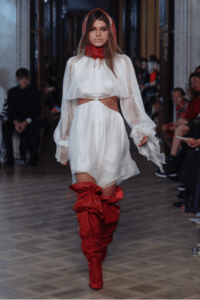 Pokud mě na loňském fashion weeku něco zaujalo, tak to jsou rozhodně modely Michaela Kovacika. Jeho červené kárované kostýmky, boho šaty i model high waisted šortek se sakem, které předvedla Cheva. Všechno navíc zkombinované s extravagantními doplňky v podobě výstředních vysokých kožených kozaček, které celý look dovedly k naprosté dokonalosti. Jen další důkaz toho, že i mezi českými návrháři se skrývají opravdové poklady.