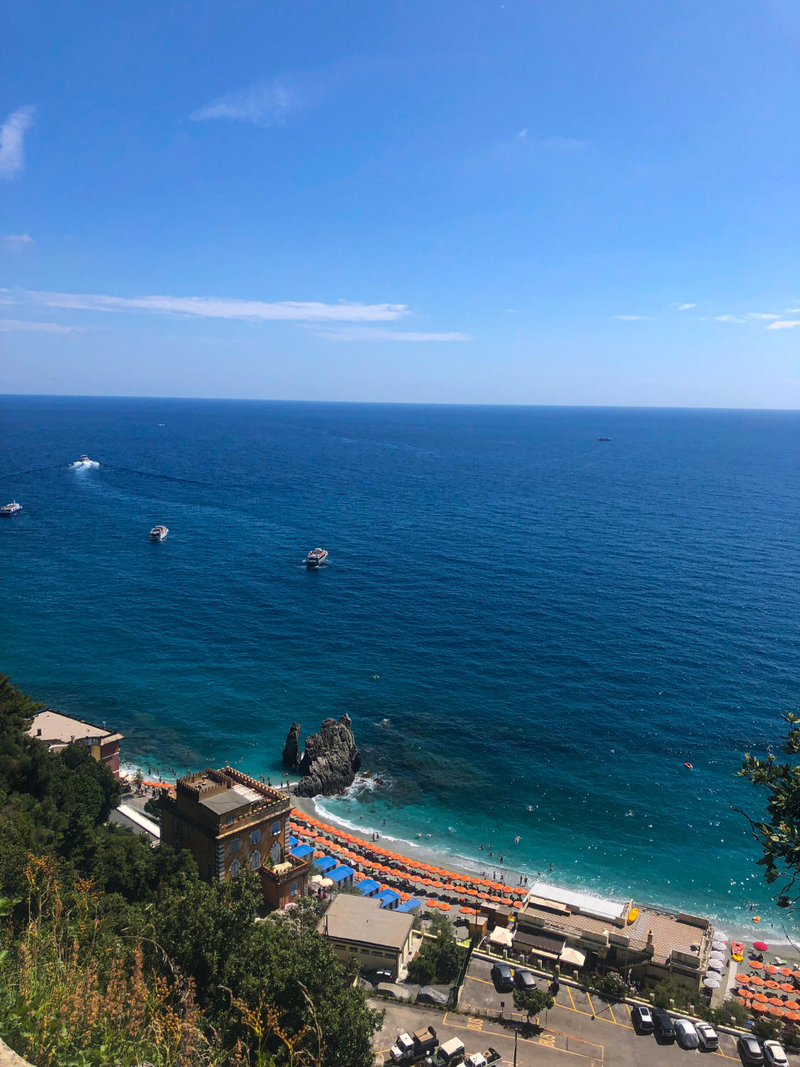Den se ale krátil a my jsme toužili po koupání v moři. Na internetu nás zaujala pláž Monterosso al Mare. Jelikož zde bylo v letním období mnoho turistů, autem jsme se k ní nedostali, a tak jsme k ní došli asi po 40 minutách svižné chůze. Těšili jsme se na pořádné mořské osvěžení, ale čekalo nás velké zklamání. V podstatě celá pláž byla soukromá, mezi davy turistů se ani nedalo projít, ale nakonec jsme se dostali k menšímu úseku, který byl vyhrazený pro veřejnost. Moře bylo ale špinavé a plné odpadků, a tak jsme se pouze smočili a vrátili se zpět k autu.