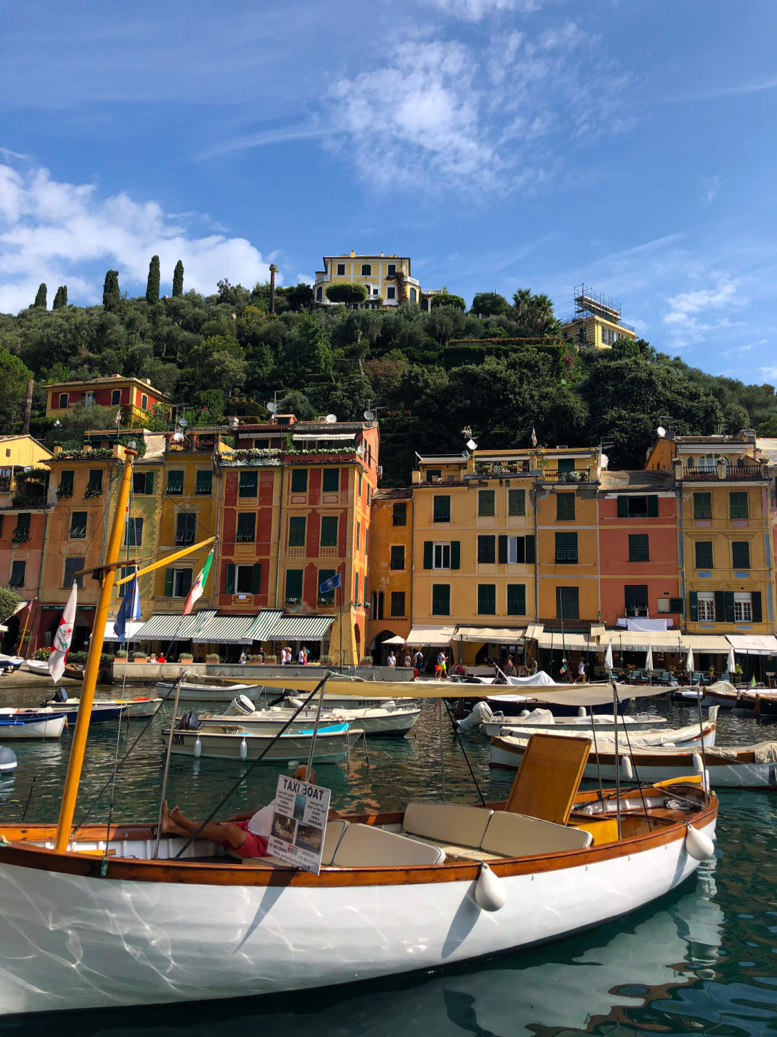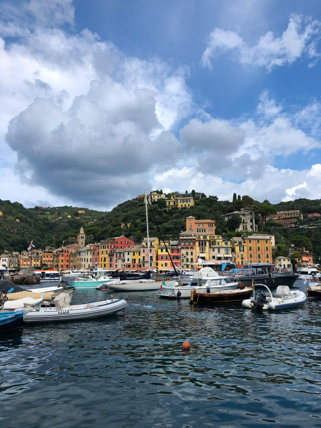 Jelikož jsme za celou dobu našeho putování Itálií nebyli u moře, nemohli jsme se dočkat krásného pobřeží Cinque Terre. Měli jsme v plánu navštívit dvě nejznámější vesničky – Portofino a Manarola. Nejdříve jsme zamířili do malebného Portofina. Před příjezdem je dobré vědět, že autem se do tohoto letoviska nedostanete, musíte ho nechat ve vedlejší vesničce. Dojít můžete buď pěšky, nebo se nabízí pohodlnější možnost, a to cesta autobusem, který jezdí každých 15 minut. My jsme si při čekání na autobus dopřáli sladkou italskou snídani – silnou kávu, koblížky a dortíky na nejrůznější způsoby. V tu chvíli jsme také pochopili, proč tolik Italů běhá. Do vesničky jsme dorazili asi za deset minut. Navštívili jsme místní obchůdky, prošli jsme se kolem menšího přístavu a vystoupali jsme na vyhlídku, ze které jsme viděli všechny barevné domky, které připomínaly duhu.