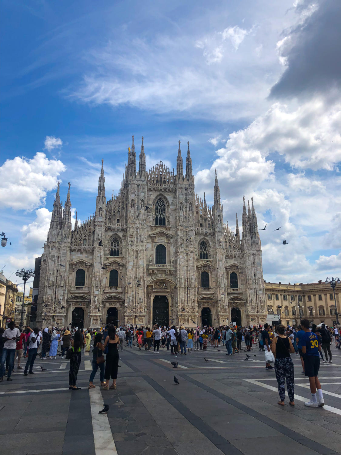 Jelikož si jako (skoro) každá žena potrpím na pěkně kousky v šatníku, aperolu a fenomenální architektuře, náš další cíl byl jasný – pojedeme do stylového evropského města, Milána! Auto jsme zaparkovali na okraji města, koupili si celodenní jízdenku metrem a zamířili rovnou do centra. Vystoupili jsme u katedrály Duomo di Milano, která nás naprosto uchvátila. I přesto, že je to obrovská stavba, působí velmi křehce a romanticky.
