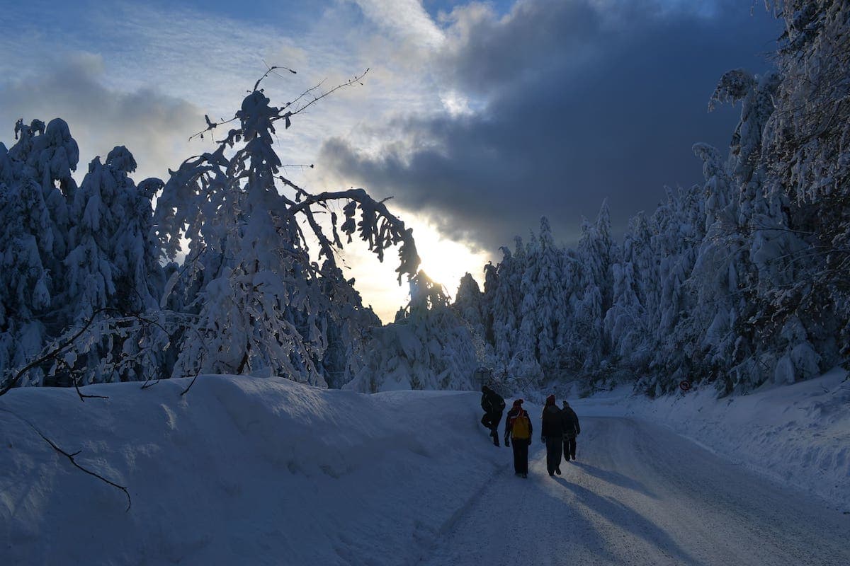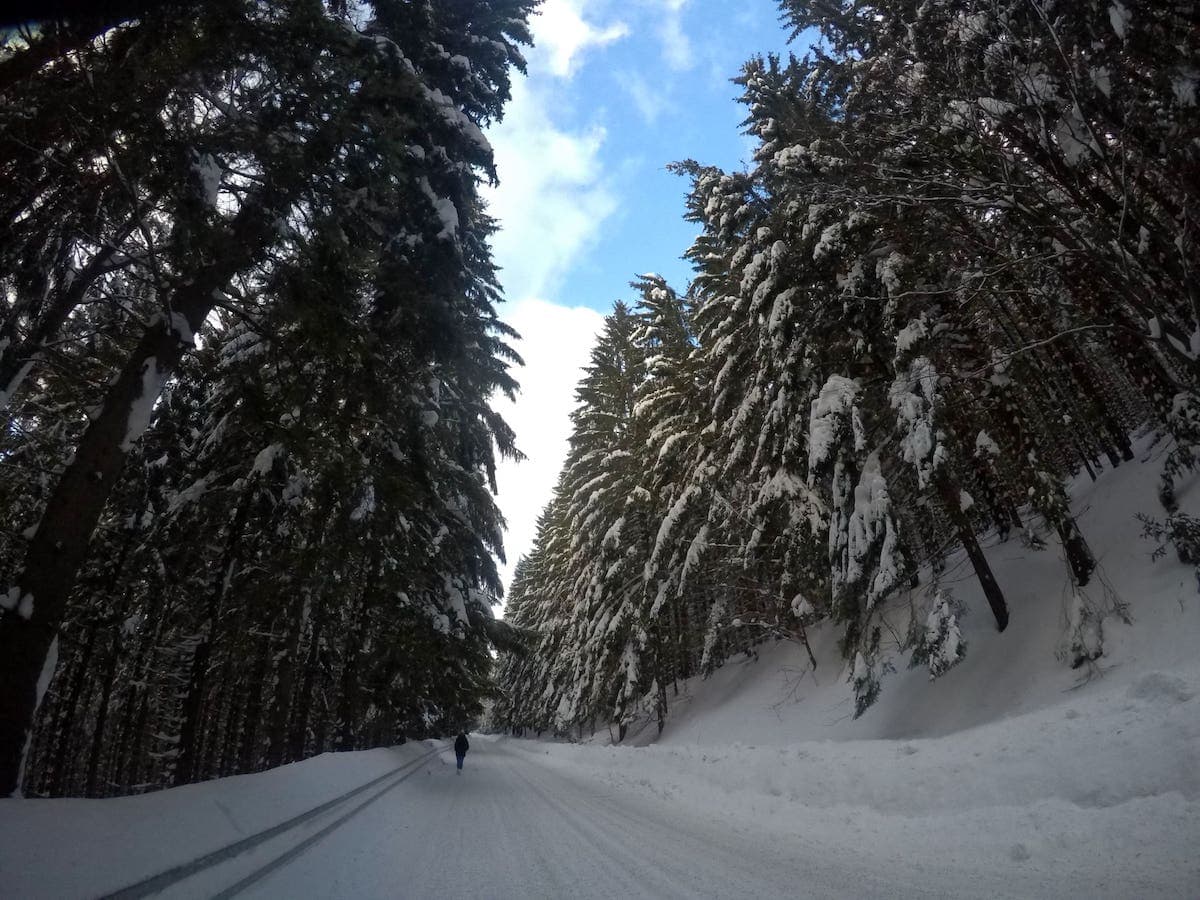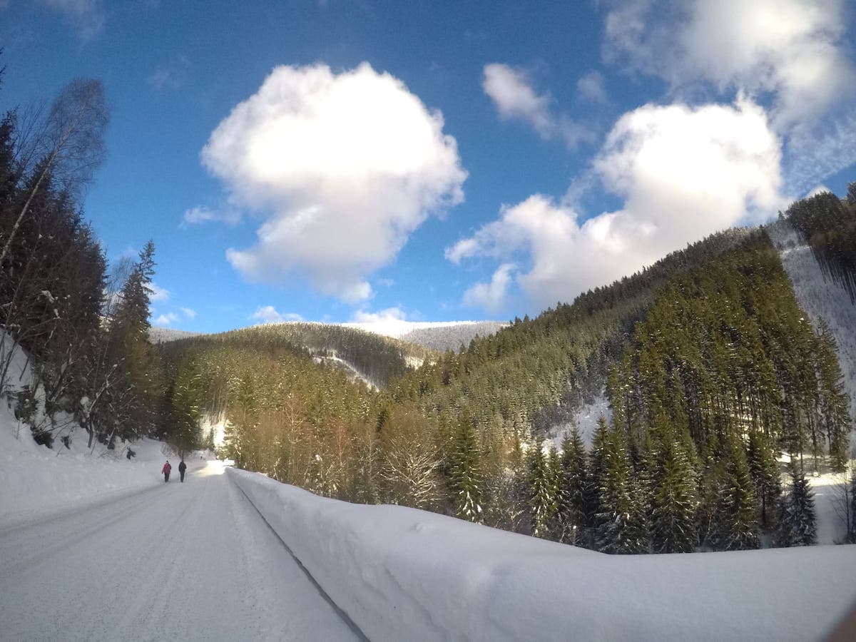 My se rozhodli pro pěší variantu. Jelikož jsme neměli řetězy, nemohli jsme dál pokračovat autem. A při pohledu na zástup lidí čekající na kyvadlovou dopravu bylo naše rozhodnutí jasné. K přemístění z bodu A do bodu B jsme využili vlastního těla. Ne nadarmo se také říká, že chůze je ten nejlepší sport. Skvěle jsme si protáhli nohy, a přitom načerpali sílu z magického okolí. Využili jsme i několika zkratek přes lesy, kde jsme se bořili až po pás do sněhu. Tuto zkušenost ale nikomu nedoporučujeme, hrozí zde totiž nebezpečí pádu stromu.