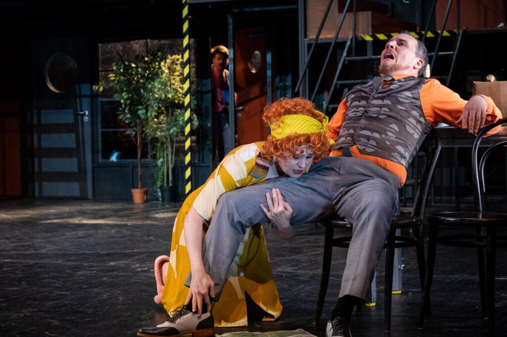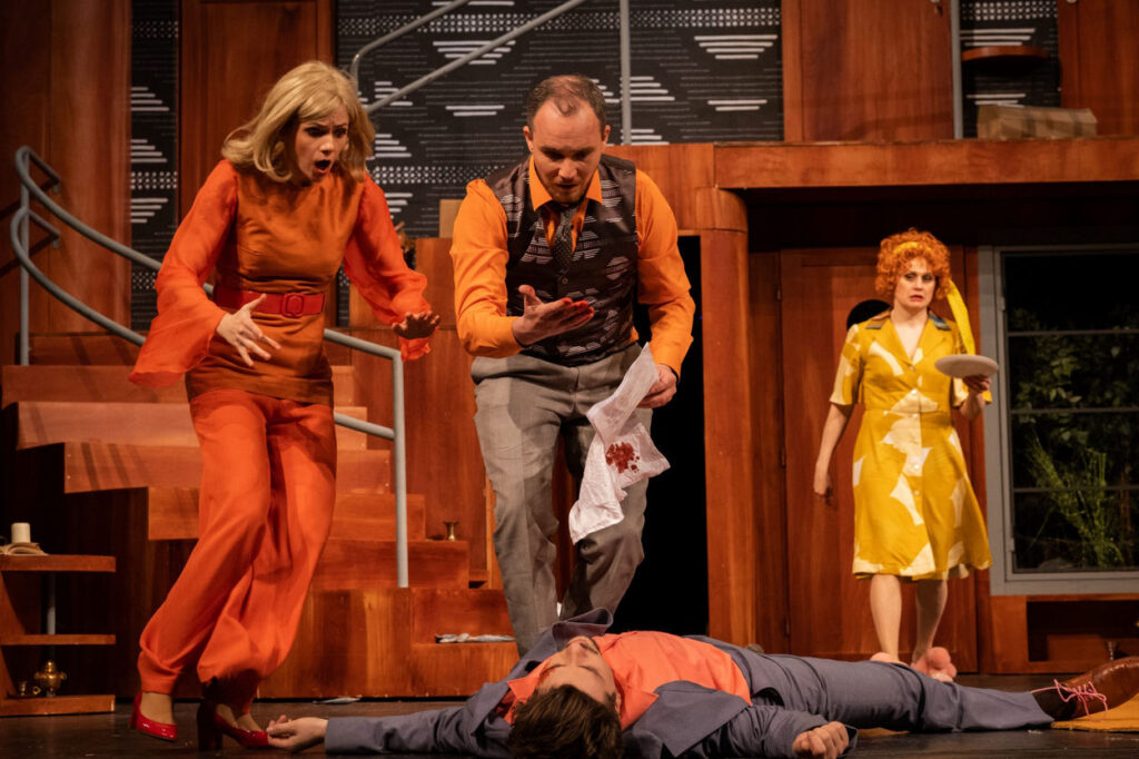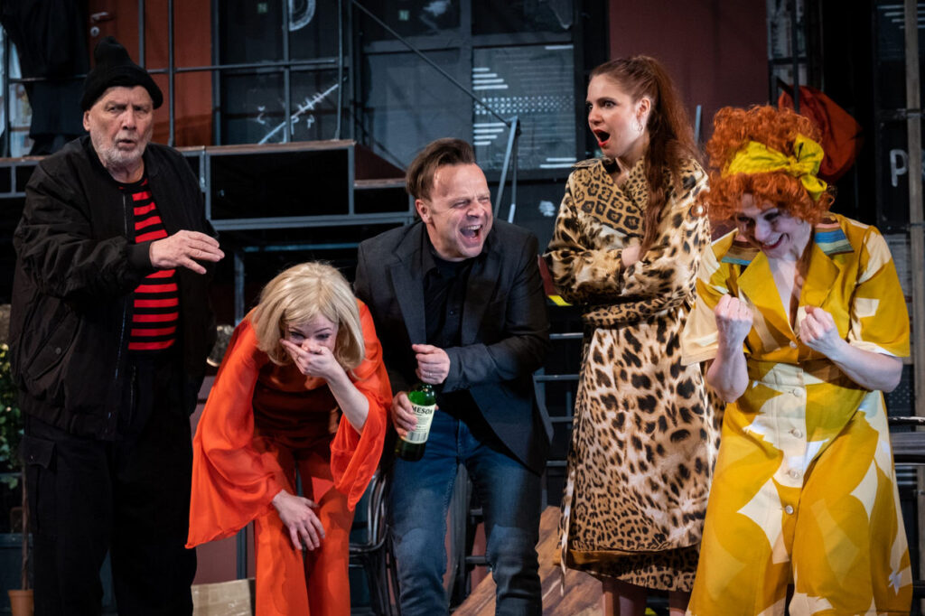 Inscenace je velmi náročná pro všechny herce. Každý z nich má prakticky dvojroli a načasování vstupů musí být bez přehánění na vteřinu přesné. Bez toho by stavba čím dál bláznivějšího příběhu nebyla možná. Hra nám také představuje různé herecké typy, které, stejně jako „zmatek za jevištěm“, jsou nepochybně dobře odpozorovány autorem, který má s divadlem letité zkušenosti.