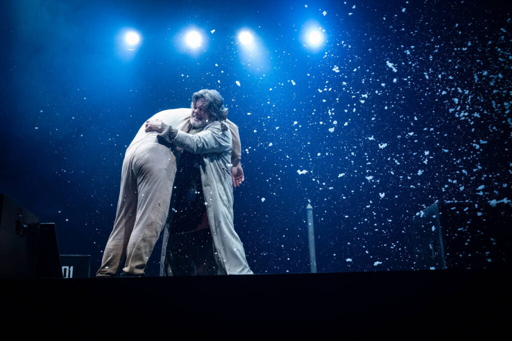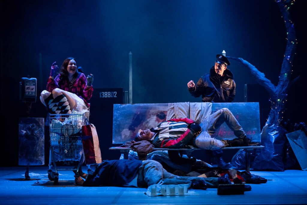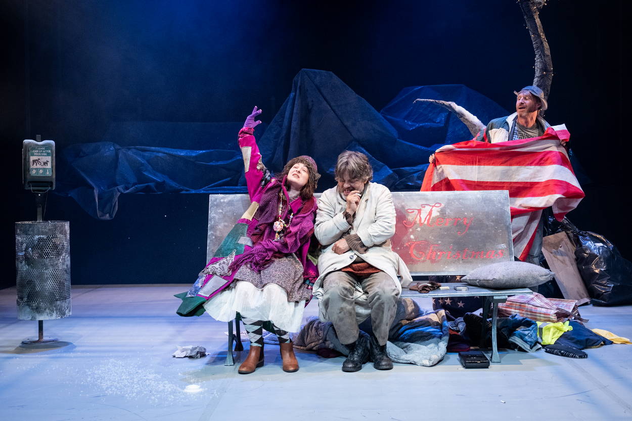 Režisér Janusz Klimsza a autor scény Michal Syrový ironicky zvýraznili živoření bezdomovců tím, že jejich příběh zasadili do času Vánoc. Zejména její santaklausovská, komerční podoba vtipně tvořila kontrastní pozadí k nevlídnému houmlesáckému prostoru. Sentimentální podobu vánočního času, tak vzdáleného protagonistům příběhu, zdůrazňovala i hudba. Sladké melodie Franka Sinatry nebo Binga Crosbyho dotvářejí celkový absurdní dojem.