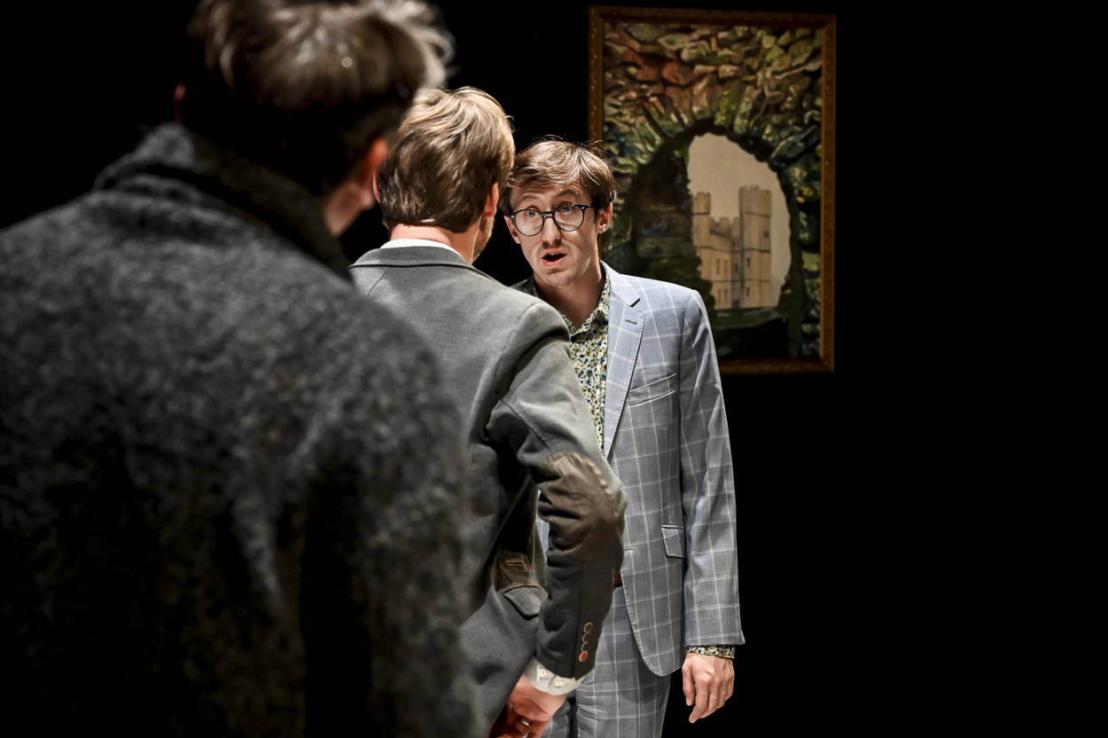 Hra je přitažlivá nápaditými dialogy. Výměny názorů, hádky, vysvětlování a obhajoby vždy probíhají zajímavým, zábavným způsobem. Ale není to jen text, na kterém je zdařilá inscenace postavena. Zásadní roli hrají i výborné herecké výkony. Žádná z postav není jednorozměrná. V každé z nich je nějaký rozpor, který je třeba vyjádřit. A to se hercům povedlo naplnit. Pavel Čeněk Vaculík ztělesňuje Borise jako navenek racionálního milovníka umění. Od počátku je ale jeho věcná střízlivost v gestech a vystupování narušena rozhodnutím obhajovat neobhajitelné. Petr Kubes naproti tomu ztvárnil Marka jako o něco přímočařejšího a temperamentnějšího. Ale je to právě zdánlivě neempatický Marek, který vycítí, že jejich přátelství je ohroženo. Největšího posunu ve svém hereckém typu bezesporu dosáhnul Petr Bláha. Zatímco se s ním často setkáváme v rolích bojovných fanfarónů, jeho Ivan je jejich pravým opakem. Je submisivním, osamělým a v podstatě neúspěšným člověkem. Taky on nás ale dokáže v pravý čas překvapit.