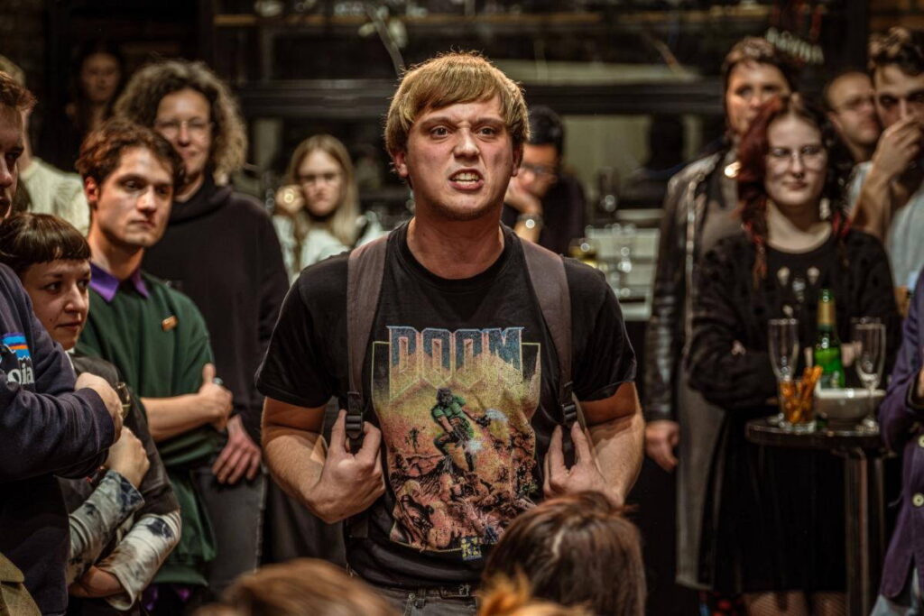 To ovšem vyvolá hádku s Feministkou (Růžena Dvořáková) a OnlyFans herečkou, které povrchní lichotky považují za nepřípustnou manipulaci a v podstatě mužský šovinismus. Dojde i na méně konfliktní pohled na erotiku, když se mikrofonu Kurátora (Vladimír Hauser), který celý večer uvádí, zmocní bývalá prostitutka Radana (Tereza Volánková) propagující tantrický sex. Ten aspoň, jak se zdá, není ve sporu s jinými druhy prožívání sexu. Kdo ví, jak dlouho by se dalo ještě pokračovat.