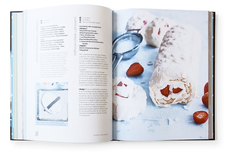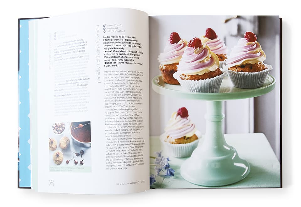V knize najdeme sladké i slané recepty. Pro velikonoční svátky doporučujeme vyzkoušet recepty na mrkvového beránka, mramorové cupcaky, punčovou roládu nebo velikonoční cop s bazalkou.