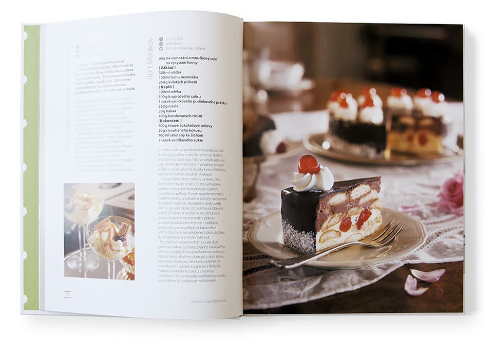 V kuchařce Dnes nepeču! najdete slavné a zapomenuté recepty: banana split, dort Malakov, tiramisu, kávová panna cotta nebo makový koláč s jablky.