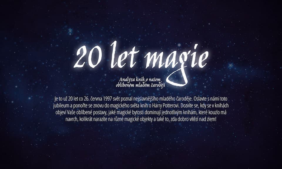 26. června 1997 svět poznal nejslavnějšího mladého čaroděje. Fanoušci knih o Harry Potterovi po celém světě, starší či mladší, původní i zcela noví, se chystají toto výjimečné jubileum pořádně oslavit. Online obchodní portál ShopAlike se rozhodl oslavit to pomocí infografiky, která vás znovu vtáhne do tohoto magického příběhu.