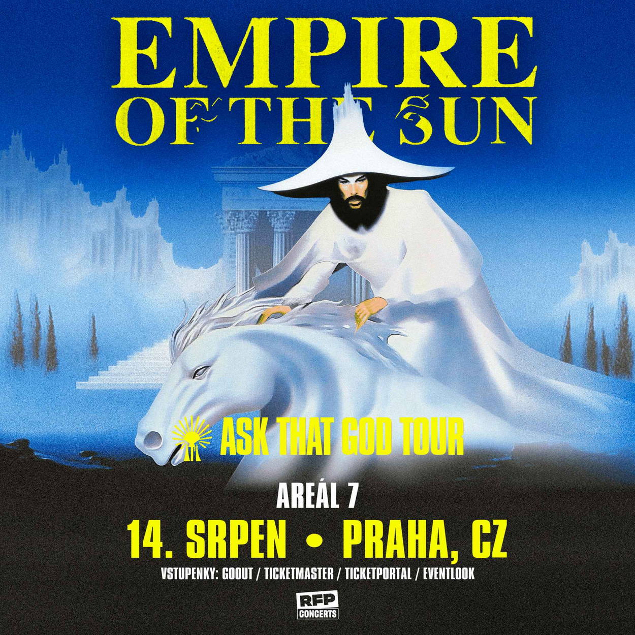 Vizionářské elektronické duo Empire of the Sun přiveze do Evropy svou okouzlující živou show, přičemž na tomto kontinentu vystoupí poprvé po šesti letech. V Česku navíc vystoupí vůbec poprvé, a to v režii RFP Concerts, tedy pro tuzemské fanoušky půjde o zcela jedinečnou příležitost užít si kapelu naživo. Pořadatelé už teď slibují, že koncert bude kromě skvělého zvuku plný fascinujících vizuálních efektů a půjde o ojedinělé provázání vizuálního umění a muziky. Luke Steele a Nick Littlemore, známí svým kaleidoskopickým spojením fantazie a reality, uchvátili publikum po celém světě svými filmovými vystoupeními a kritikou oceňovanou hudbou.