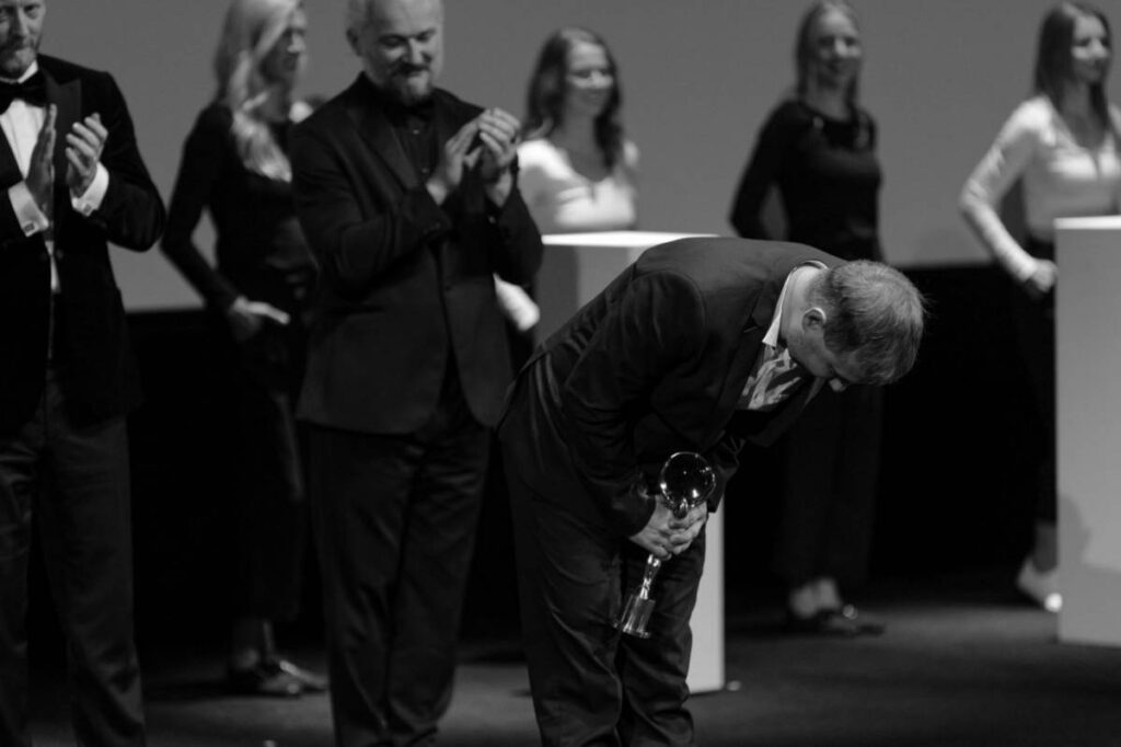 Z hororu se vracíme do rozsvíceného sálu a přichází samozřejmě tradiční moderátor večera, pan Marek Eben. Osobně se mi jeho řeč na zahájení líbí vždy, ale ta letošní překonala všechny ostatní. Promluvit k odchodu Jiřího Bartošky bez patosu jistě nebylo jednoduché, ale zvládl to s naprostou grácií. Společně s výkonným ředitelem Kryštofem Muchou a uměleckým ředitelem Karlem Ochem pak předali první ceny – pro Vicku Krieps a Petera Skarsgårda za mimořádný přínos světové kinematografii. Svou premiéru si také odbyla tradiční festivalová znělka v režii Ivana Zachariáše. K té se však vrátíme samostatně.