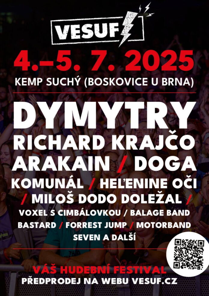 Jedenáctý ročník multižánrového hudebního festivalu Vesuf se uskuteční 4. a 5. července 2025 na Pastýřské louce mezi obcemi Suchý a Velenov nedaleko Boskovic. Festival nabídne dosud nejdelší line-up ve své historii, který spojí špičkové interprety české hudební scény napříč žánry. Vesuf se již etabloval jako jedna z nejvýznamnějších kulturních událostí v regionu, která každoročně přiláká tisíce návštěvníků z celé České republiky. Letos se pořadatelé připravují na další nárůst návštěvníků.