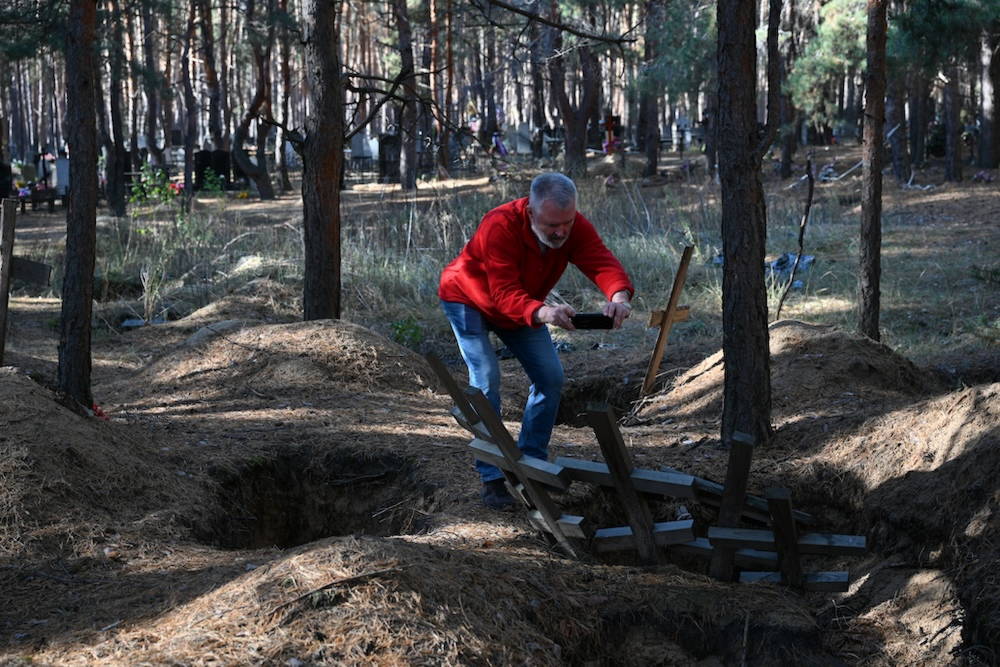 Hlavní část filmu se točila v Charkově a okolí, masové hroby v Izjumu, filmaři nakonec dojeli až na Donbas, cestou zpět natáčeli i v Kyjevě a ve Lvově. Součástí štábu byl kriminolog a deviantolog, Petr Pojman, který doprovázel filmaře jako bezpečnostní analytik, oporou v krizových a možných traumatických situací byl psychiatr Petr Pöthe. Po dobu natáčení na Ukrajině doprovázela celou skupinu jako překladatelka a průvodkyně Lucie Řehoříková, ta v minulosti vedla šest let České centrum v Kyjevě. Všichni měli v mobilech staženou aplikaci, která v reálném čase alarmem upozorňuje, kam v daném okamžiku letí raketa. Jak upřesňuje a vyzývá režisér Kvapil: „Například v Charkově to pak trvá třicet vteřin, než raketa dopadne, čili většinou se schovat nestihnete. V Kyjevě nebo ve Lvově je situace jiná, tam je od alarmu do dopadu několik minut. Tu aplikaci si může každý vyzkoušet, jmenuje se Air Raid Alert Map of Ukraine. Stáhněte si ji a zapněte si Charkov pro představu, v čem tam lidé žijí. Nechte si ji zapnutou den a uvidíte…“