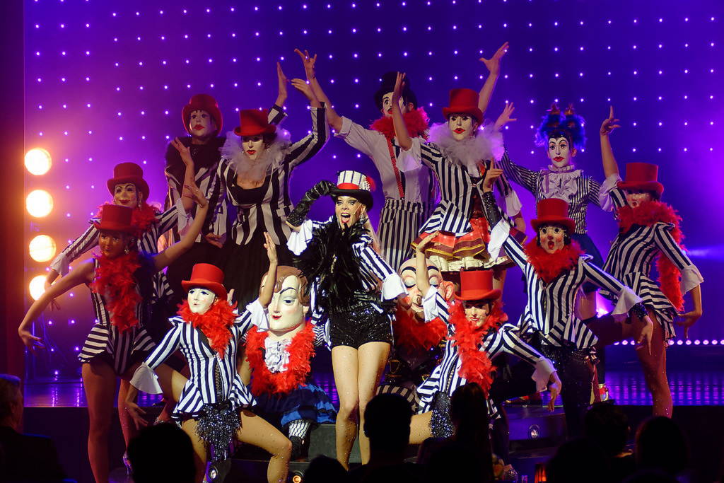 Samotná show byla rozdělena do několika částí. Zahajovací Grand Opening Parade, při kterém se za doprovodu hudby Parov Stelar ukázali všichni účinkující, záhy vystřídal blok věnovaný písničkám z filmu Chicago. V průběhu večera pak zaznělo plno dalších známých písní jako Young and Beautiful od Lany Del Rey, Diamonds are Girl’s Best Friend od božské Marylin, Tango de Roxanne z filmu Moulin Rouge či známé šlágry Life is a Cabaret a Money Makes The World Go Round z filmu Kabaret. Chybět nesměl ani Offenbachův kankán a vše vyvrcholilo nejen melodií písně Sing, Sing, Sing v podání big bandu Bennyho Goodmana, ale také opět electroswingem z dílny Parov Stelar.