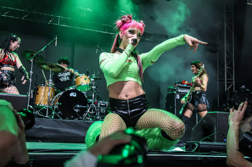 Deliah Bon je 27letá britská zpěvačka, skladatelka a producentka, která strhla na svou stranu hlavně ženské publikum. Svou energickou a lehce přidrzlou show si získala sympatie publika a její neotřelý vzhled zaujal nejen dámy. Její riot girl punk říznutý hip-hopem i metalem měl ohromnou šťávu a temperament. Svými texty, hudbou a vystupováním posiluje především postavení žen, nebinárních a LGBTQ+ lidí po celém světě.