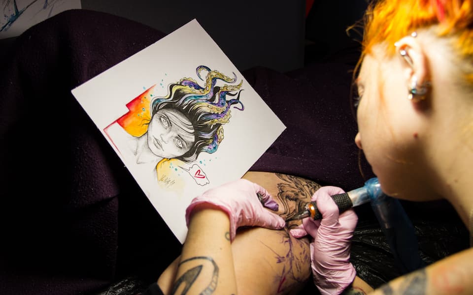Na závěr celého festivalu byla k vidění ta nejlepší z nejlepších tetování. Mě osobně nejvíce zaujala mladá tatérka Lilith Urbanczyk. Její styl je plný barev, zvířecích a snových motivů připomínajících akvarelové malby. Takže umění nemusí být jen na plátně, ale třeba i na těle… stačí to umět a milovat.