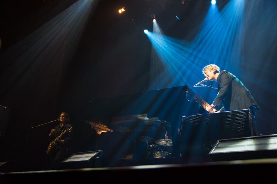 Hra světel. Ta dokázala vytvořit intimní atmosféru, stejně jako probrat publikum z depek. A Tomovi to stejně nejvíc sluší, když je ozářen světlem reflektoru s rukou na klavíru…