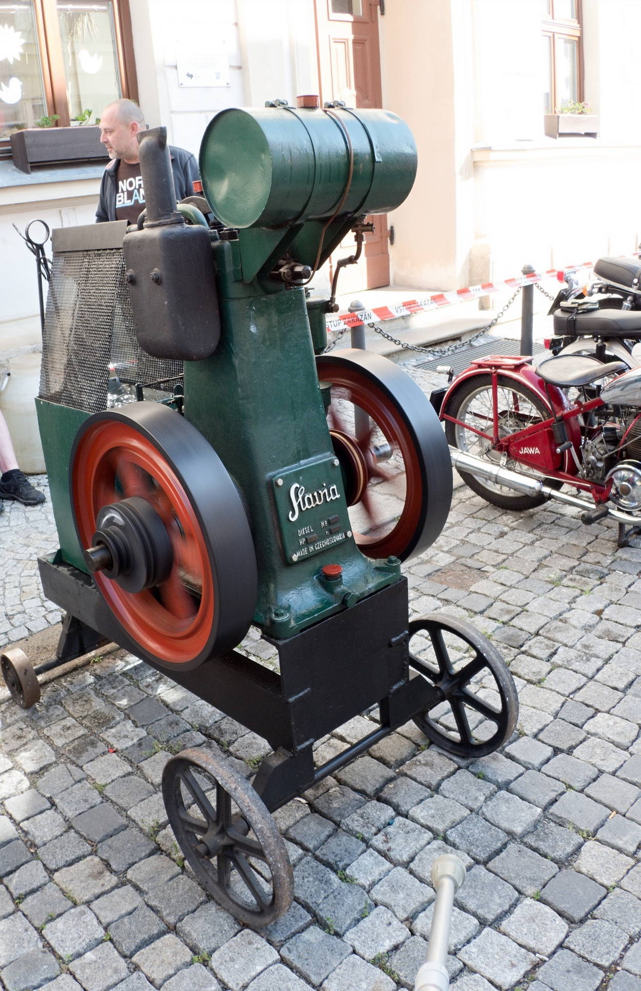 Ten je zajímavý, protože je tady jediný. Ten jsem zrenovoval já, tady je každoročně. Máme ještě jednu Slavii, ta je osmikoňová, máme čtyřkoňovou. Naše kapacity ale nestačí na to, abychom to vše zařídili, zprovoznili a sem dovezli. Takže vystavujeme jenom tu jednu. Neměli bychom ale zapopmenout ani na zajímavou tříkolku, kterou vidíte mezi automobily. Je plně funkční, homologovaná a uhání nejen v Čechách, ale i po celé Evropské unii.