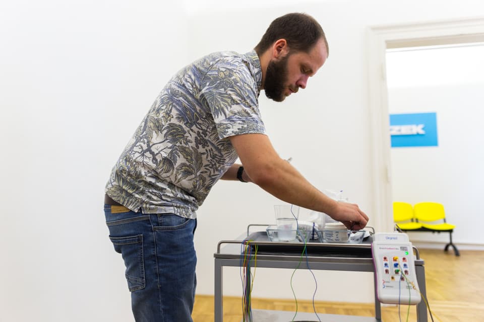 A právě tak se zrodil Dr. Mozek, neurofeedbacková platforma kombinující virtuální realitu a uměleckou expresi s reálnými a v praxi využívanými léčebnými metodami, Strouhalova diplomová práce na UMPRUMu.