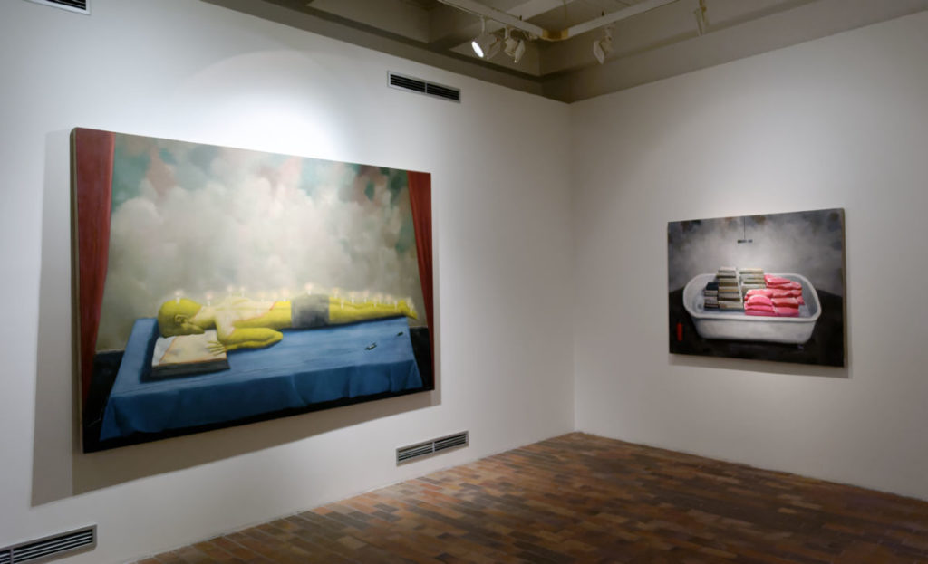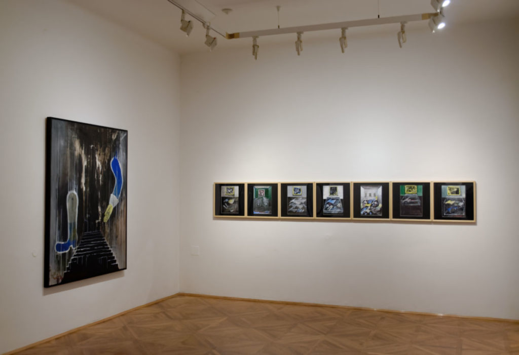Pokud se nyní vrátíme k výstavě, musíme shledat, že i samotná volba prostorů je poměrně zvláštní. Ano, Dům U Kamenného zvonu je nádhernou budovou, avšak jeho původně gotické prostory vytvářejí se zcela očividně současným uměním obou autorů kontrast tak prudký, až to bije do očí. Zatemněné ponuré místnosti sice skvěle dotvářejí depresivní atmosféru navozenou obrazy, avšak i přes to je možné, že nějaká více industriální budova by zamýšlené umělecké sdělení přenesla lépe.