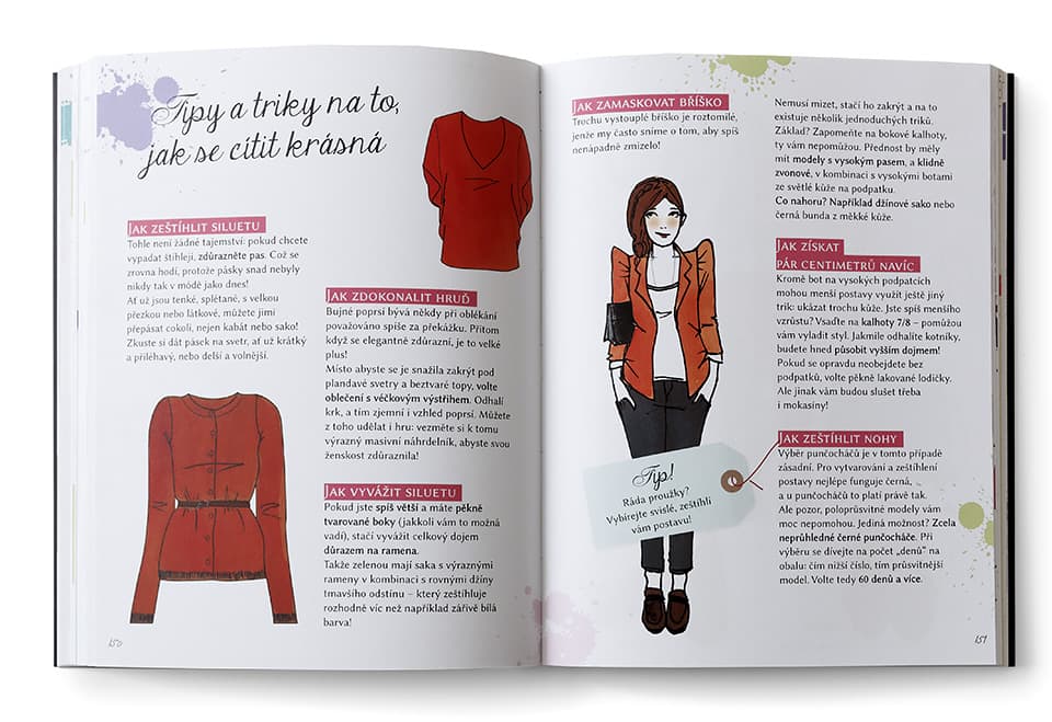 Ačkoliv je kniha určena spíše mladším teenagerkám, ocení ji určitě i starší ročníky. Je přehledná, protkaná sympatickými ilustracemi výše zmíněné Alix de Moussac. Líbí se mi volné stránky určené pro poznámky čtenářky, tipy a triky, jak obléknout určitý typ postavy, aby vypadala dobře, nechybí 10 základních pravidel stylu, které platí v každém věku. Šikovným pomocníkem je i kapitola Co do kufru…, která poradí, jaké oblečení s sebou zabalit na dovolenou (ať už do kempu, do tropických zemí, na hory, na poznávací víkend do města či na venkov).
