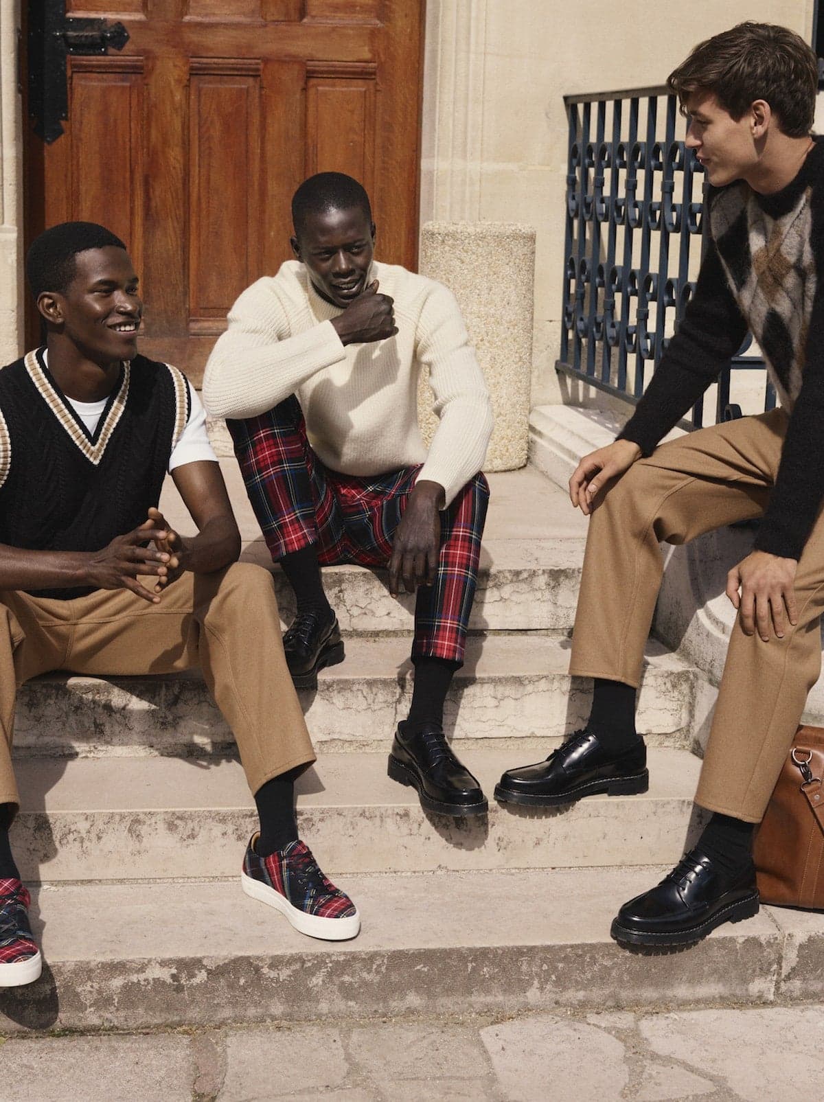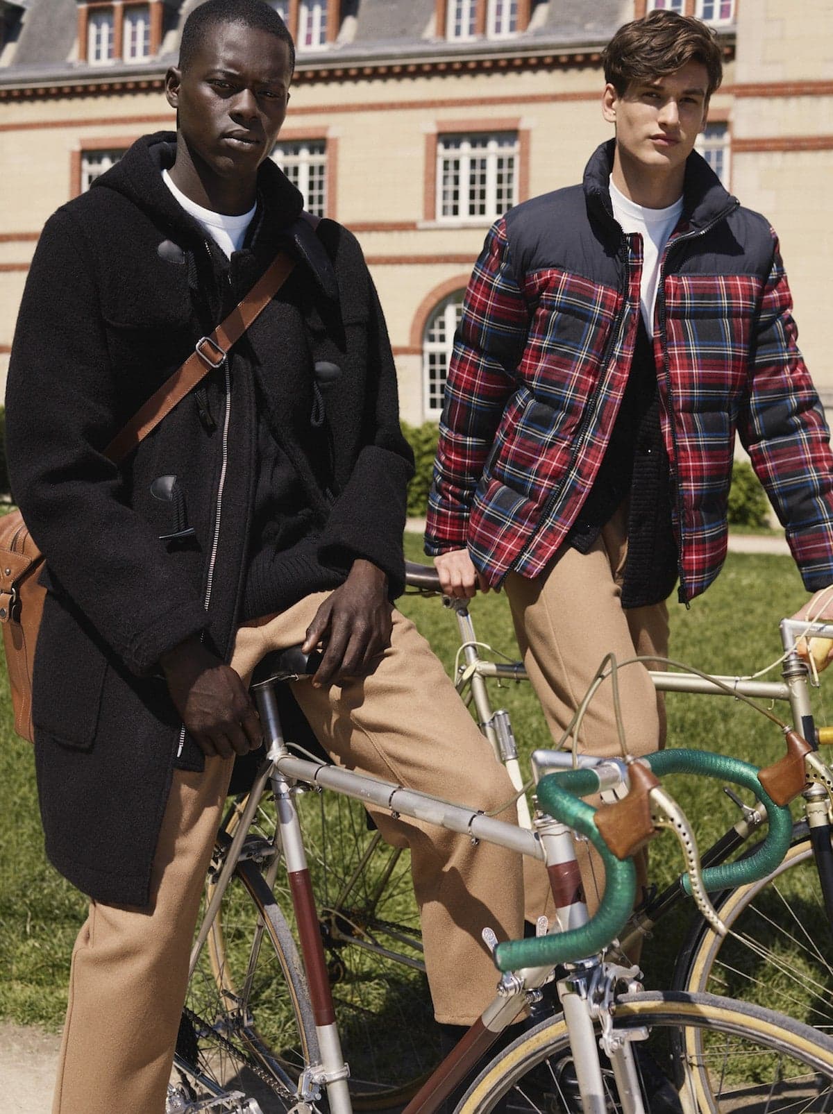 Pánská část kolekce kombinuje sportovní pojetí módy s tradičním preppy stylem, nabízející tak autentickou klasiku v prémiovém provedení. Svrchní klasiky jako retro duffle coat, westernová bunda z recyklované vlny a pea coat jsou přetvořeny, tartanu je dán moderní nádech díky sportovní siluetě a najdete ho jak na svetrech, tak na kalhotách.