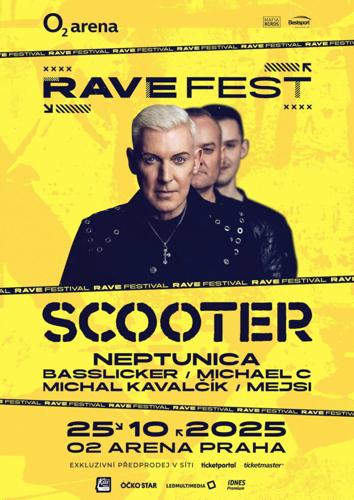Příští měsíc vystoupí v O2 areně ikonická německá kapela Scooter. Jejich energická show dorazí do Prahy 25. října v rámci Rave Festivalu a nyní zbývá už jen 15 % vstupenek! Na pódiu Scooter doplní Neptunica (DE), Basslicker, Michael C, Michal Kavalčík a Mejsi.