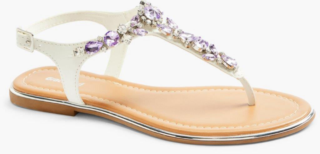 Sandály à la žabky. Ani ty letos v kolekci nechybí. Elegantní modely zkrášlené třpytivými kamínky vás nenechají projít bez povšimnutí.