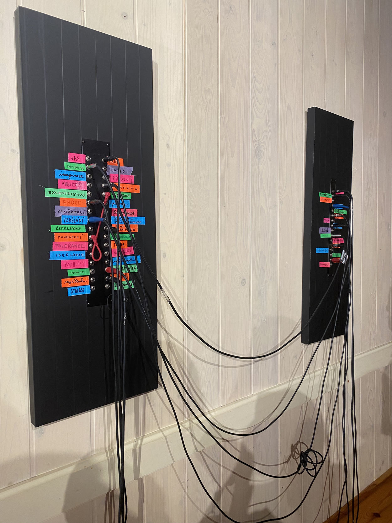 Vše si lze ještě doplnit díky anotaci k výstavě. Zážitek ze samotné výstavy vám totiž žádná slova nepřenesou. Klíčové je totiž místo, kde je výstava aktuálně instalována. K Tančírně musíte dojít buď pořádný kus pěšky nebo sem dojet vlastním autem. Nachází se opravdu na konci světa, což mimochodem potvrzuje i cedule nedaleko. Není mnoho jiných věcí (kromě baru a výborné kavárny), které by vás zde rozptylovaly. Není tady téměř mobilní signál. Jaké tedy jiné místo si vybrat k zamyšlení se nad tématy, které se týkají nás všech žijících v těchto zvláštních časech?