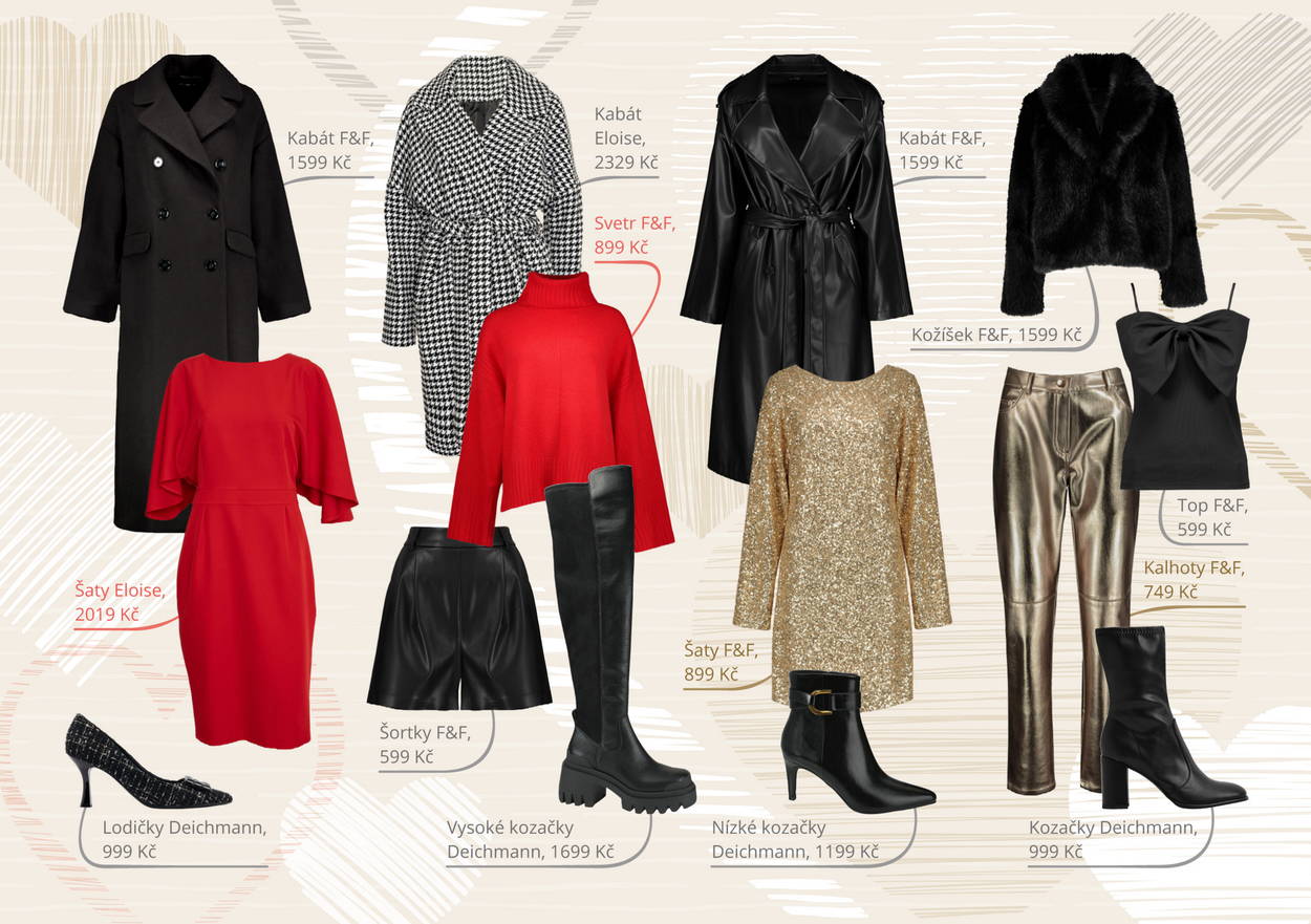Odvážné outfity jsou na Valentýna přímo vítány. Na výběr máte splývavé saténové šaty, které zvýrazní vaše křivky, flitrové minišaty, ve kterých budete zářit, nebo atraktivní body doplněné o koženkovou sukni, či kalhoty. Jemné lesklé materiály krásně kontrastují s kůží, koženkou nebo umělou kožešinou. Zanechte nezapomenutelný dojem…