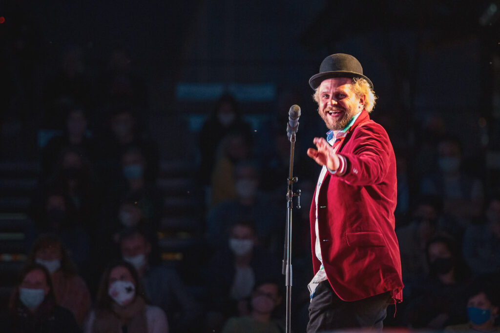 Ostatně právě platformě Cirk La Putyka (A)live a dalším aktivitám souboru v době karantény byla věnována první část představení. Podobně jako diváci doma sledovali i diváci v sále live stream přenášený na plátno, během kterého Rosťa Novák ml. zrekapituloval, co vše se za poslední dva měsíce událo a co Cirk La Putyka během té doby vytvořil. A nebylo toho vůbec málo! Vedle záznamů představení Memories of Fools, Hit, Tell the Difference nebo Up End Down vznikly také pořady Backstage a Homework. A hrála se i La Putyka, tentokrát v opravdové hospodě, odkud probíhal live stream.