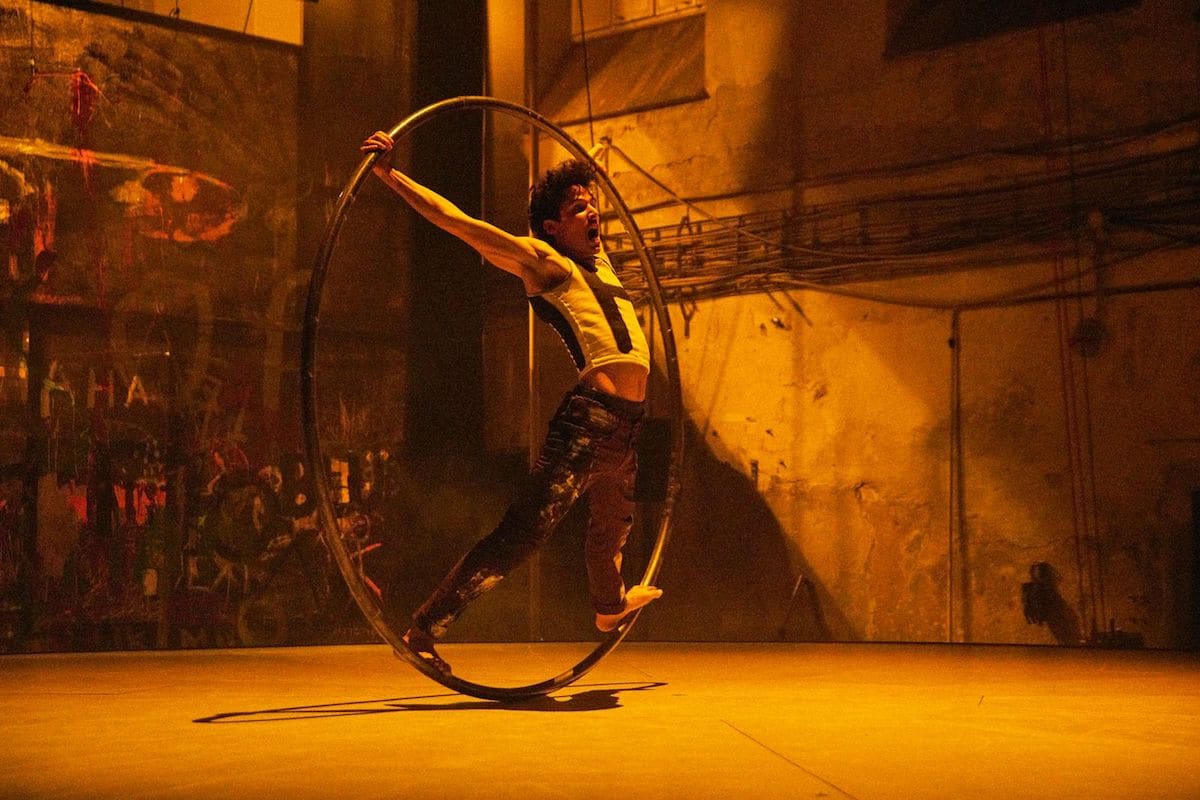 Balancu, který je cílem a završením představení, dosahují akrobati skutečně, díky kruhovému jevišti. To je zpočátku stabilizováno železnými podpěrami zakončenými kolečky, díky kterým se mohla scéna otáčet.