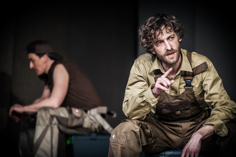První zhruba hodina představení probíhala ve formě monologů jednotlivých postav, které se občas propojily. Takže si představte tři chlápky v montérkách sedících na bednách od piva, jak si každý z nich mele svou. Na tom by ještě nebylo nic špatného. Ale hra troskotala na velice neobratných promluvách. Postava Rickiho v podání charismatického Petra Bláhy byla občas vtipná. Ale hlavně kvůli vulgarismům a kvůli tomu, že jeho příběh měl atraktivní zápletku. Řemeslník, který “klátí” manželku zadavatele práce, zatímco si ona za každé číslo udělá čáru na zeď, aby ho po nakreslení deváté odkopla. Po častém opakování se to ale rychle omrzelo.