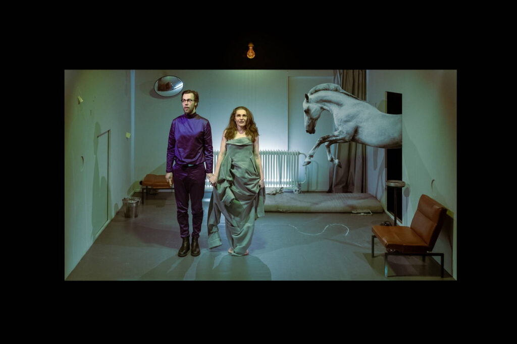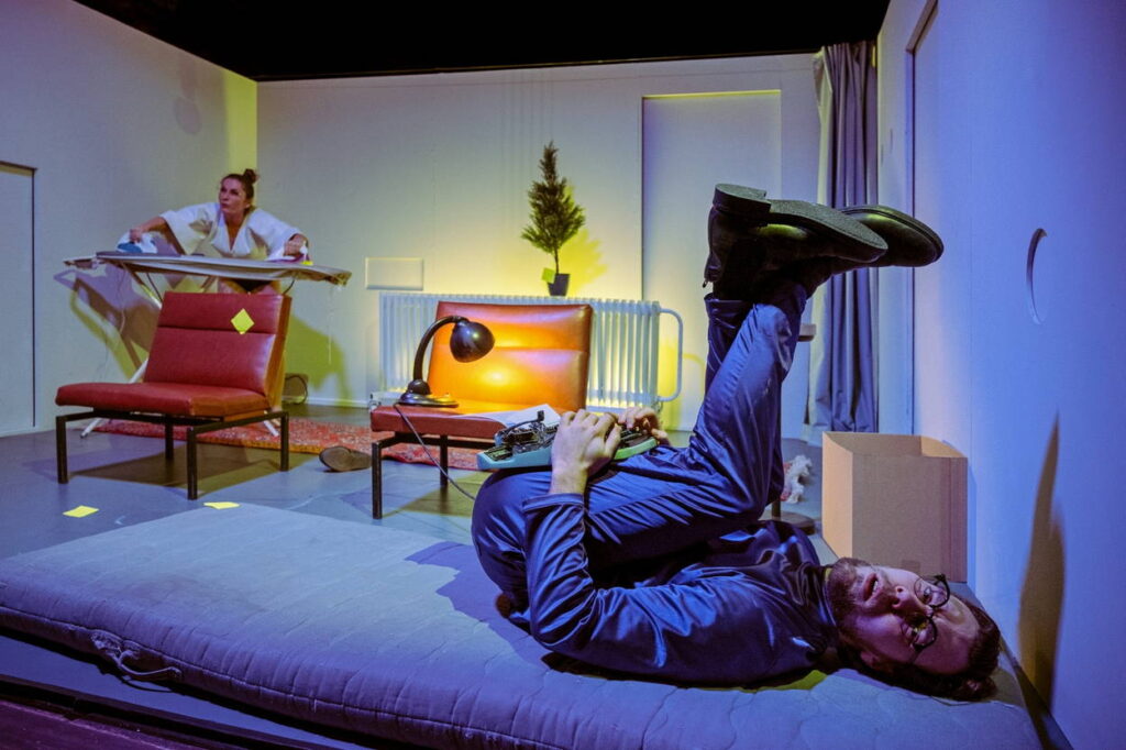 Zvuková kulisa na začátku představení zpřítomňuje temné dunění doznívající války. Inscenace mapuje počáteční očekávání, opatrnou naději pramenící z nového života po válce i nového vztahu. Ale je tu hned v prvních větách přítomná otázka, jestli je ještě možné žít po tom všem zase normálně. V pozorném nazírání světa očima lyrických básníků ovšem nemůžou chybět motivy zkázy a bezvýchodnosti. S nimi oba po celý život těžce zápasili.