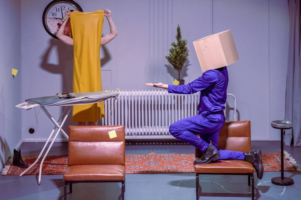 Scéna Petry Vlachynské je důsledně laděna ve výrazných pastelových barvách. Ty navenek působí uklidňujícím dojmem. Jako by se už život vrátil do normálu. Na jejím pozadí však procházíme komplikovanými citovými labyrinty, které rozhodně neslibují klidnou existencí. Prostor jeviště je ohraničený stěnami pokoje a zprvu je skoro prázdný. Postupně, jak se více dozvídáme, přibývá i rekvizit na scéně. Výprava citlivě a s invencí reaguje na vývoj vztahu obou protagonistů.