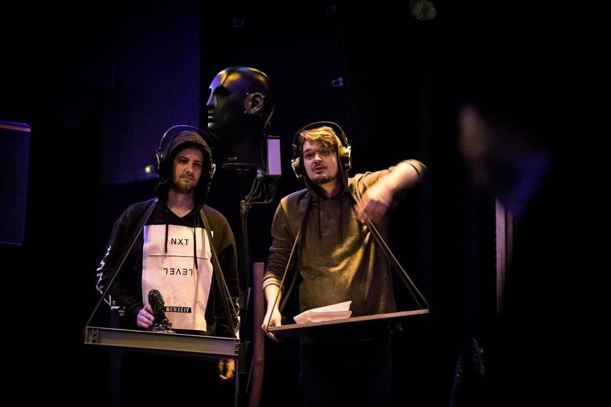 Kromě technologie binaurálního zvuku využívá inscenace i tradiční principy ruchařské práce, tedy přímo na jevišti vzniká řada zvuků za použití předmětů, které byste si s nimi rozhodně nespojili. Tak například oblíbené montypythonovské skořápky kokosových ořechů simulují zvuk koňských kopyt, v ruce drcené borové šišky připomínají praskot ohně, šustění magnetofonových pásek připomíná chůzi v trávě a solamyl v kondomu… inu, zkuste si to doma, nebo se zajděte podívat do NoDu. Inscenaci John Sinclair: Umění braku ON AIR v režii Petry Tejnorové, jež také využívala ruchařského umění, uvedl soubor 11:55 už v roce 2013, co se však technologie binaurálního zvuku týče, patří české prvenství právě NoDu.