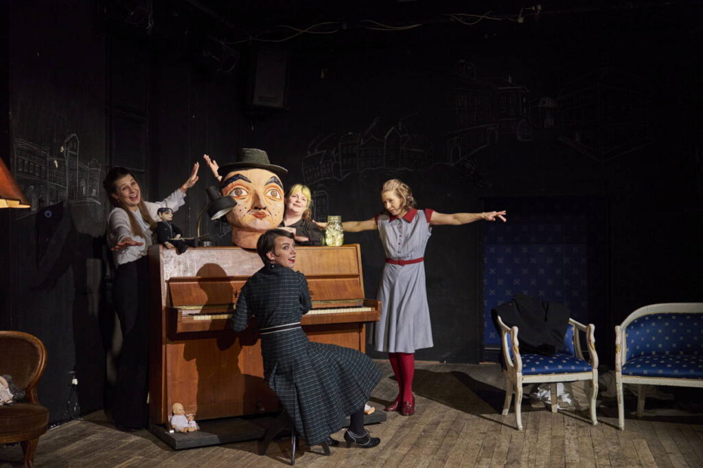 Herečky zvládají široké spektrum poloh, od kabaretních čísel a hry na klavír, při níž se střídají, aniž by narušily rytmus skladby, přes vzájemné „činoherní“ interakce až po práci s loutkou, při níž se samy dostávají do pozadí dění a nechávají za sebe mluvit objekty. Nicméně v některých momentech, zejména při komentování děje, jejich vtip ztrácí lehkost; přehánějí to s gesty a působí nuceně.