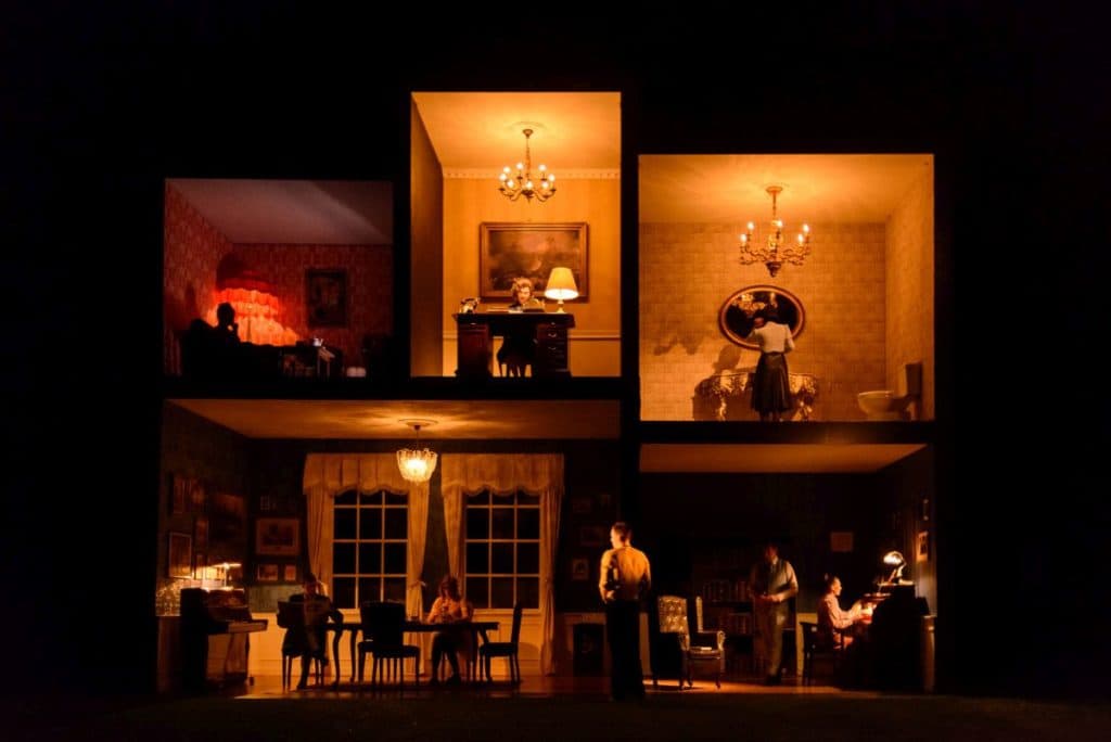 Scéna Lukáše Kuchinky je úchvatná. Připomíná rozevřený domeček pro panenky, které byly v Británii velmi oblíbené v 19. století. Divák sleduje různé pokoje – koupelnu, jídelnu a pracovnu u Feddenových, pracovnu Thatcherové a byt Lea, jenž se po přestávce promění ve Waniho byt. Jednotlivé pokoje se rozsvěcují podle toho, kde se děj zrovna odehrává. Kostýmy Jany Smetanové krásu celé výpravy jen podtrhují. Takže i když vás děj nemusí nutně zaujmout a nadchnout, můžete se aspoň kochat.