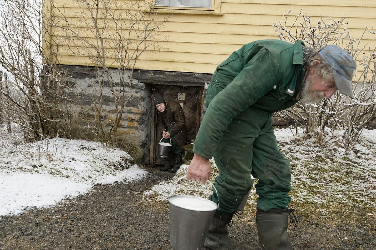 I přes svůj pokročilý věk totiž Kleivovi stále žijí bok po boku na rodinném statku, který po většinu času obývají zcela sami. Poprvé do jejich oken nahlédneme uprostřed zimy. Ta umí, jak asi tušíte, být v Norsku pořádná. Navíc statek Kleiva (jmenuje se podle svých obyvatel) se nachází v poměrně nehostinné krajině na západě této severské země, asi 200 kilometrů severně od Bergenu. Poblíž jednoho z největších norských fjordů, v úchvatné krajině, která dokáže Středoevropana naprosto ohromit. Jenže statek neleží romanticky na úpatí fjordu s krásným výhledem, ale na úpatí místních kopců šplhajících hned od pobřeží do pořádných výšek.
