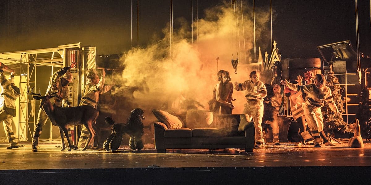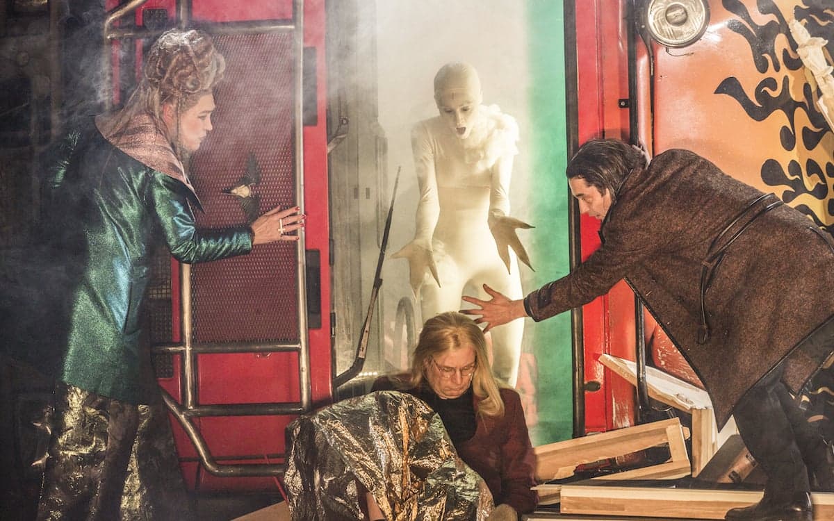 Faust v režii Jana Friče je inovativní a baví. Srší však i mnoha nápady a v druhé části už to může být pro diváka náročné na vnímání. Až mě napadá, zda by nebylo lepší se inspirovat Karlem H. Hilarem, který obě části uváděl v samostatných večerech. Ačkoli je pravda, že tím by inscenace ztratila na soudržnosti. Scénu v podobě zmíněného kamionu, kterou vytvořil Dragan Stojčevski, považuji jednoduše za geniální. Posloužila nejen kabina, ale i návěs, který propouštěl světlo dle potřeby. Kostýmů, jež má na svědomí Linda Boráros, v průběhu představení herci vystřídají mnoho, nejvýraznější jsou zlatě třpytivé overaly nymf a latexový komplet Mefista. Pavlína Štorková jako Bůh diváka na začátku zaskočí, za současných okolností jej i zamrazí, víc ale nebudeme prozrazovat.