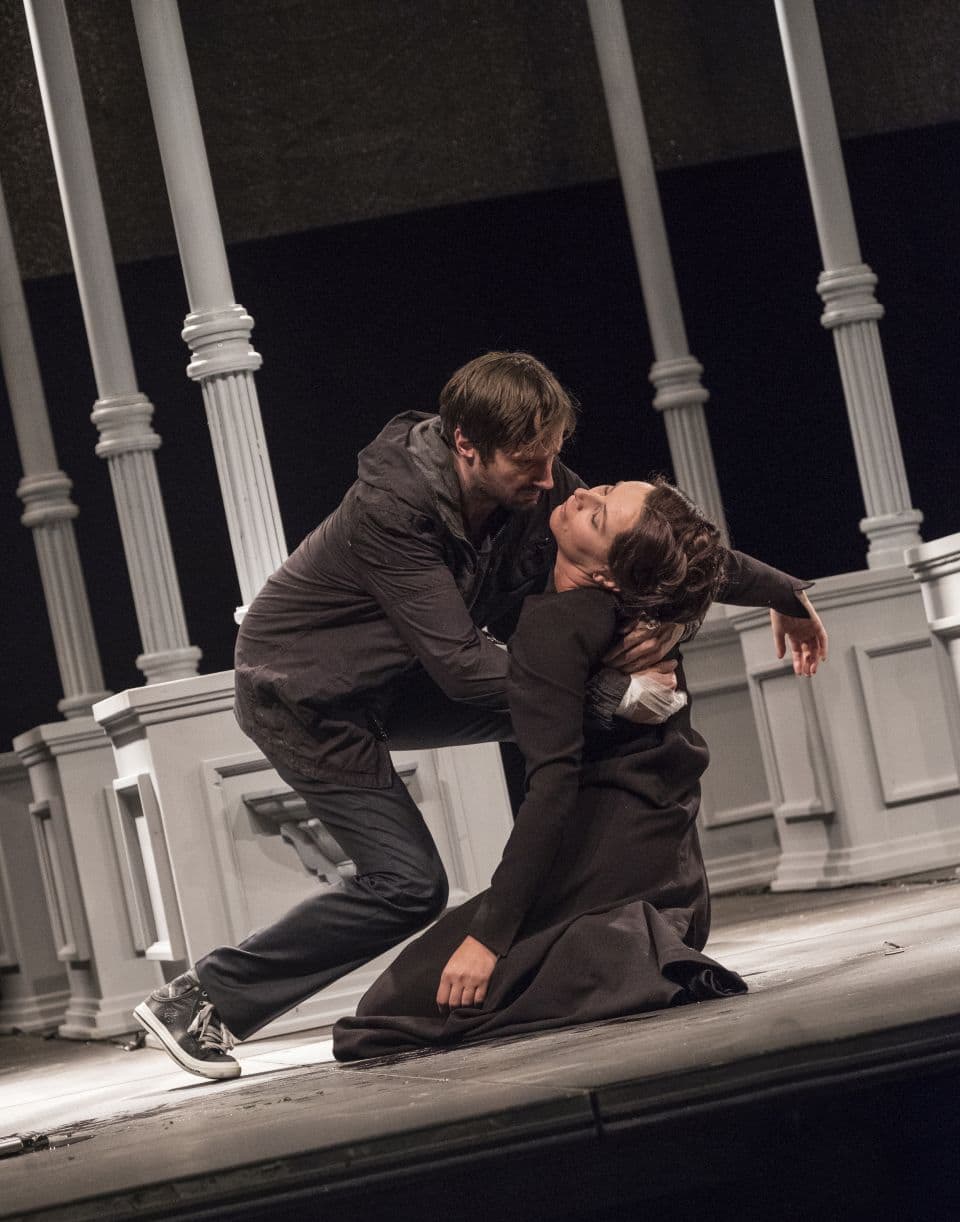 Hamlet ve své nové úpravě pro letní scénu prošel kromě nezbytného krácení i modernizací. Ducha Hamletova otce tak Horacio natočil na video, Ofelii Hamlet posílá zamilované textovky. Bohužel trochu kontraproduktivně pak ale působí, že tyto zprávy zachovávají Shakespeara v jeho květnatosti. Hodilo by se spíše dotáhnout to do moderního zkratkovitého podání s trochou nadsázky. Dále však nepřekvapí, že místo kordů jsou taseny pistole a že kostýmy Kataríny Hollé odpovídají současné módě. Slavná replika o bytí a nebytí zazní také, nikoli však z úst Hamleta, nýbrž Polonia, jehož si Hamlet před vystoupením herecké společnosti dobírá, že kdysi platil za dobrého herce.