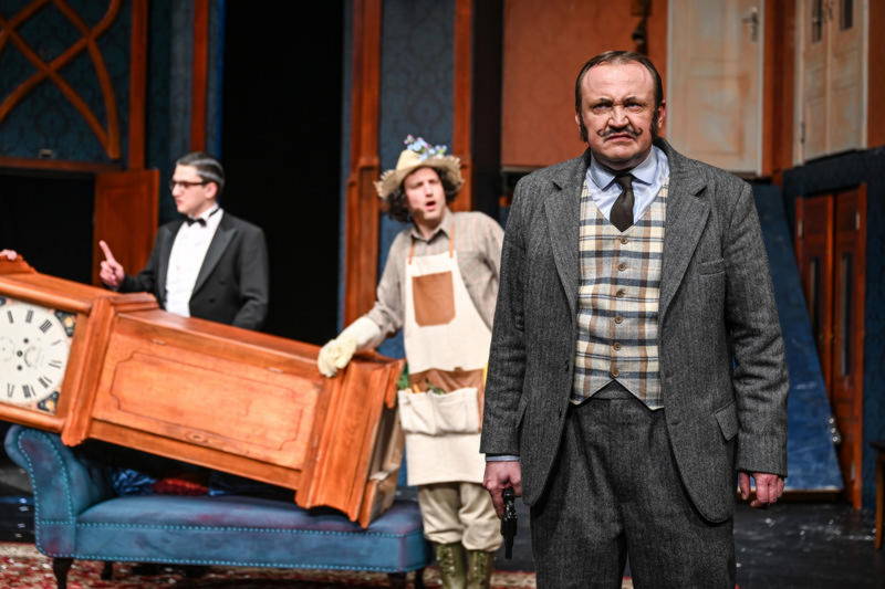 Humor hladce plyne především v prvním dějství, kdy je vše nové a neokoukané. V druhém dějství vršení absurdit, byť většinou vtipných, přece jen trochu zevšední a chtě nechtě očekáváme ještě nějakou gradaci. Závěr se ale poctivě snaží dostát tomu, že pozadí tvoří detektivní příběh. Podle pravidel žánru se tedy dozvíme, kdo a proč vraždil. To je samozřejmě chvályhodné, ale zároveň to citelně zpomalí děj zrovna ve chvíli, kdy by měl kulminovat. Naštěstí závěrečná destrukce scény vrací příběh do groteskní polohy a částečně vše vynahrazuje.