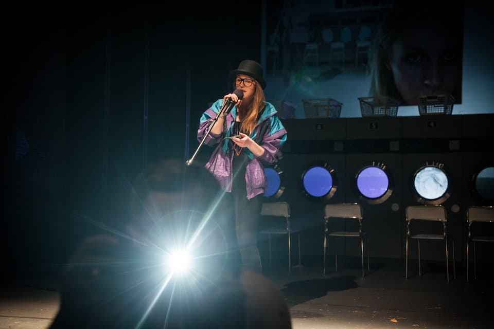 U alternativního hipster stylu života se na plátno promítala facebooková stěna, na kterou diváci mohli přidávat své příspěvky. A taky že přidávali. Jsem si dost jistá, že jsem z hlediště slyšela brblání na pomalé internetové připojení. Přeci jen, jak často se vám poštěstí, že vás v divadle někdo přímo vyzve, abyste vytáhli svůj telefon?
