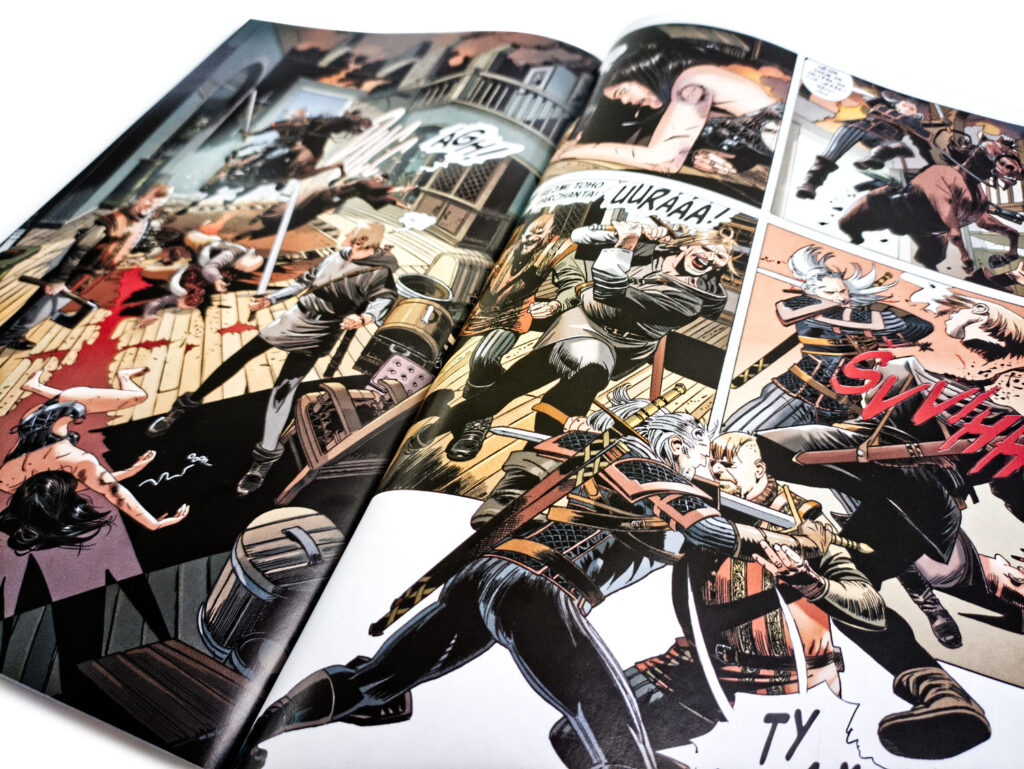 Na rozdíl od seriálové adaptace od Netflixu, komiksům ze světa Zaklínače se úspěšně daří pohybovat se po tenké hranici toho, co činilo tak úspěšnými knižní předlohu i populární herní sérii. Nejinak tomu je v případě Corvo Bianco. Na střídačku sledujeme Geraltovo pátrání po vězni jménem Ante a útrapy, které zažívá Yennefer na vinohradě. V jednom vizuálně podmanivém balíčku dostáváme vše, co máme na Sapkowského světě tak rádi. Svět komiksu je zabydlen směsicí výrazných vedlejších postav – ať už je to Sir Renson Bolius nárokující si Geraltovo panství nebo bojovná elfka Clentaest a trpaslík Elivalla, kteří provázejí Geralta na jeho cestě. Obligátních bojových scén je v komiksu požehnaně, navíc ve velice vydařeném zpracování. Dialogy jsou uvěřitelné, správně „zaklínačsky“ surové, plné úsečností a sarkasmů. Obzvlášť výživné jsou v tomto ohledu Geraltovy interakce s Yennefer nebo elfkou Clentaest.