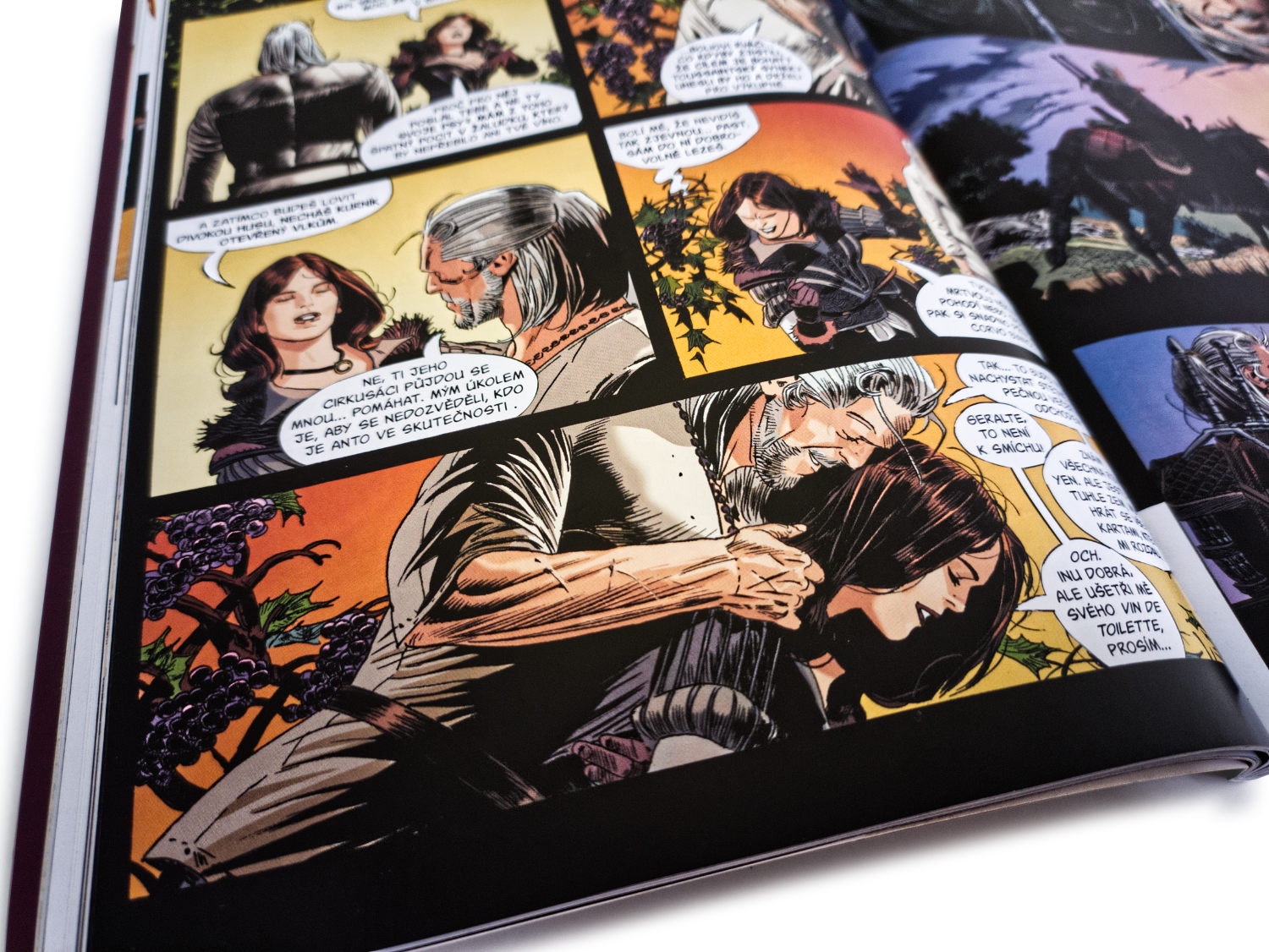 Na rozdíl od seriálové adaptace od Netflixu, komiksům ze světa Zaklínače se úspěšně daří pohybovat se po tenké hranici toho, co činilo tak úspěšnými knižní předlohu i populární herní sérii. Nejinak tomu je v případě Corvo Bianco. Na střídačku sledujeme Geraltovo pátrání po vězni jménem Ante a útrapy, které zažívá Yennefer na vinohradě. V jednom vizuálně podmanivém balíčku dostáváme vše, co máme na Sapkowského světě tak rádi. Svět komiksu je zabydlen směsicí výrazných vedlejších postav – ať už je to Sir Renson Bolius nárokující si Geraltovo panství nebo bojovná elfka Clentaest a trpaslík Elivalla, kteří provázejí Geralta na jeho cestě. Obligátních bojových scén je v komiksu požehnaně, navíc ve velice vydařeném zpracování. Dialogy jsou uvěřitelné, správně „zaklínačsky“ surové, plné úsečností a sarkasmů. Obzvlášť výživné jsou v tomto ohledu Geraltovy interakce s Yennefer nebo elfkou Clentaest.