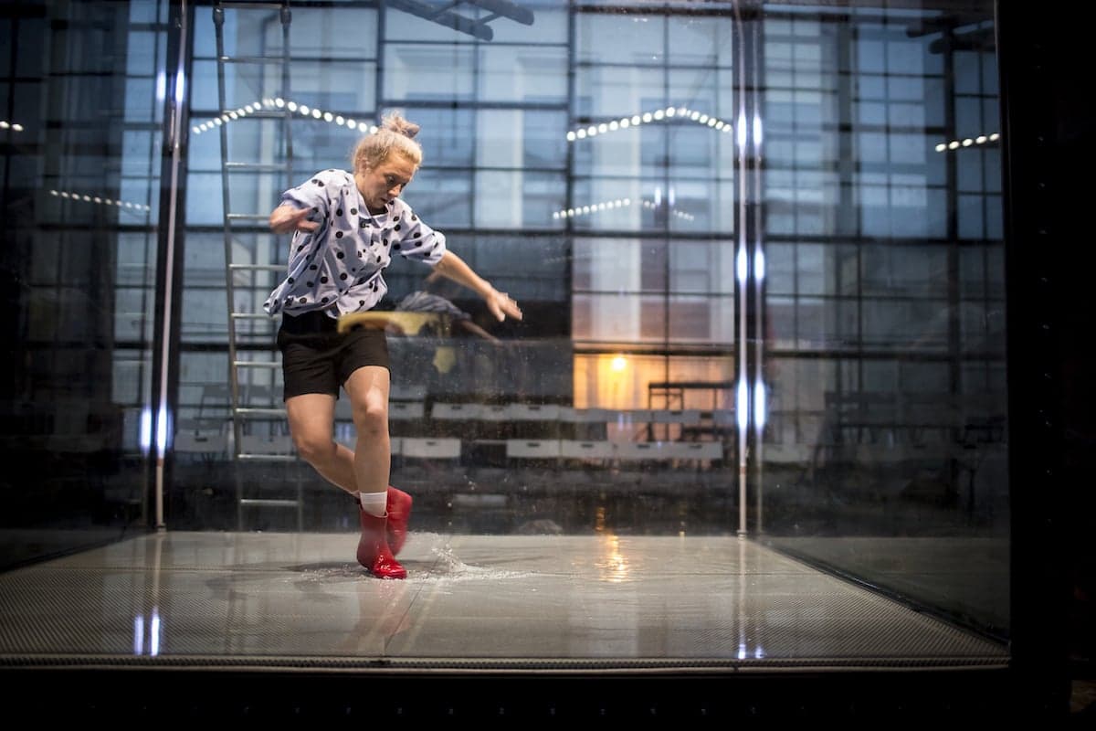 Do této chvíle mi představení připadalo dokonalé. Nečekaně vtipné (s ohledem na název i anotaci jsem čekala od počátku hluboce filosofický pohled), v zásadě promyšlené a někam směřující. Ale ne nadlouho. Všechno se zhatilo ve chvíli, kdy na „jeviště“ vtrhli dva technici, utnuli Dvořákové křepčení a začali pozorně prohlížet, zda akvárium těsní. Ano, nemuselo to být hrané, ano, akvárium mohlo začít prosakovat, ale ne, nemyslím si, že tomu tak doopravdy bylo.