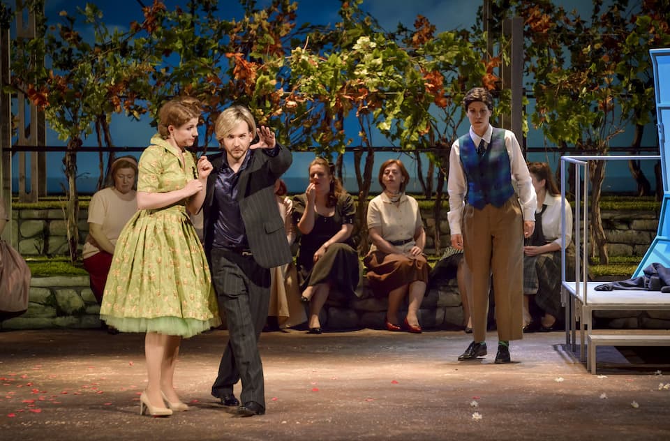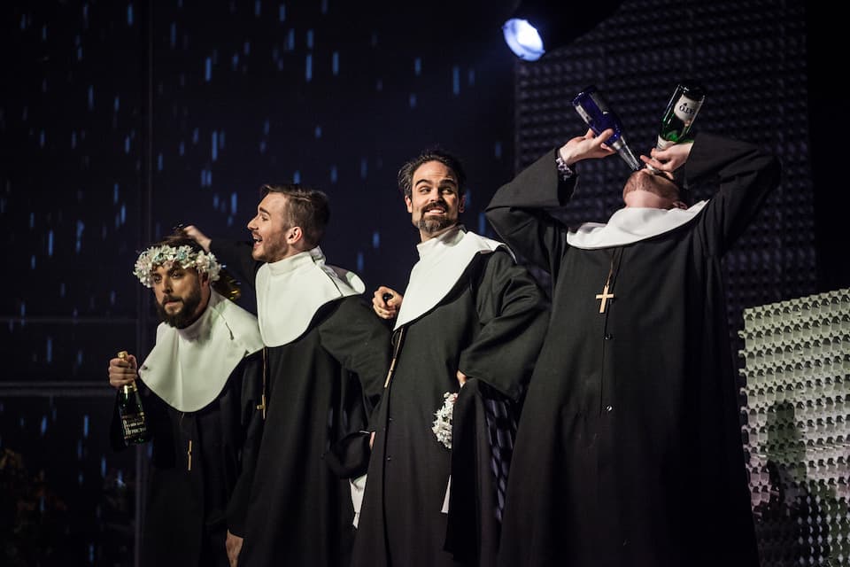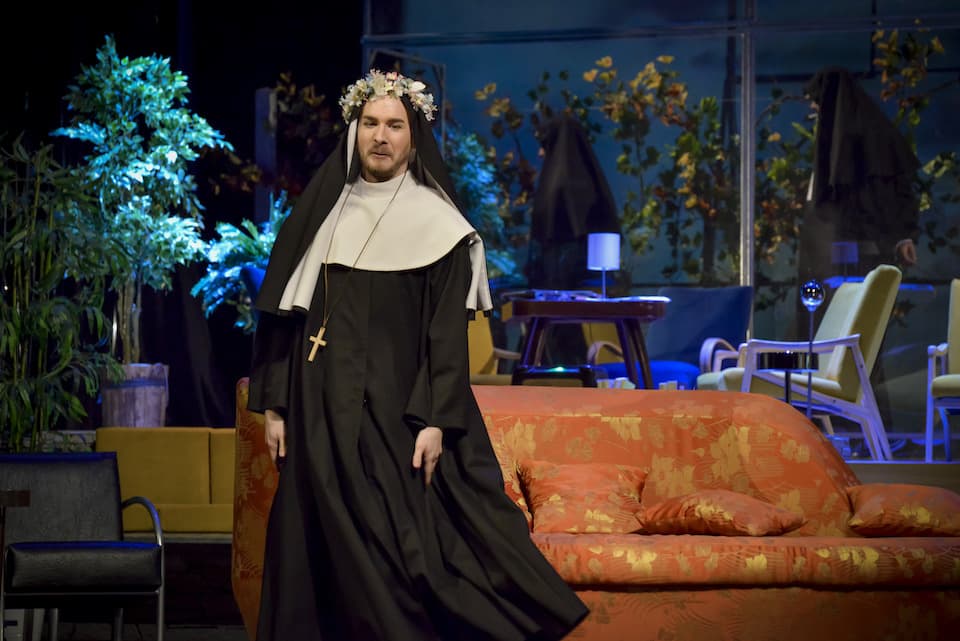 Režisérka Lenka Flory se rozhodla inscenaci zasadit do padesátých let 20. století. A jelikož stála zároveň i za tvorbou scény a kostýmů, navzájem se tyto tři složky nijak nebily. Osobně si nemyslím, že by přesunutí děje ze středověku bylo opeře nějak na škodu. Mírně absurdně působí jen neustálé čekání na manžely, kteří se vydali na křižácké tažení a vrací se vítězoslavně z ragbyového zápasu. V inscenaci se nešetřilo humorem. Samotný příběh opery o prostopášníkovi, který se snaží dobýt srdce i klín hraběnky v převleku za jeptišku, si o to vyloženě říká.