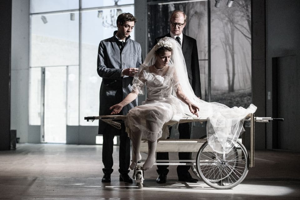 Do Stavovského divadla jsem šla tedy bez předsudků, bez očekávání. Ačkoli ne, to je lež. Očekávání jsem měla. Poradí si Jan Mikulášek, kmenový režisér Divadla Na zábradlí, s prostorem Stavovského divadla? A jak scénograf Marek Cpin? Bez obalu prozradím, že si vedli náramně a vytvořili vizuálně propracovanou inscenaci. Připadalo mi však, že neodolali možnostem, které takto velká scéna nabízí, a chtěli mermomocí využít všech technických vymožeností. A taky z toho vyždímali, co se dalo.